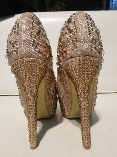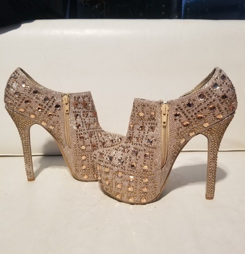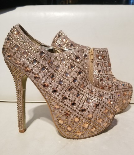 Bella Luna Crystal Champagne Platform Pole Dancer Stripper Booties Stiletto 7.5