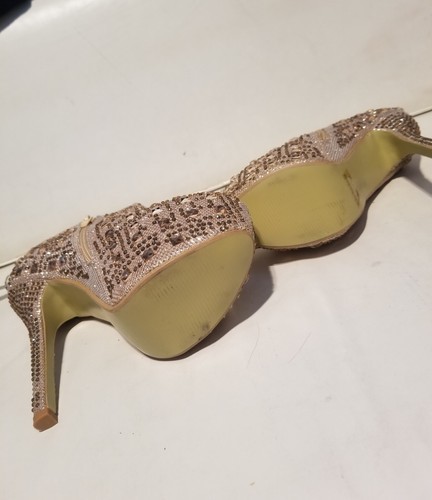 The Bella Luna Crystal Champagne Platform Pole Dancer Stripper Booties in stiletto style with almond toe shape are a glamorous and eye-catching choice for various occasions such as weddings, parties, casual wear, and formal events. These gold boots feature glitter and rhinestone accents, crystal detailing, and a 5 3/4-inch ultra-high heel, making them perfect for those looking to add a touch of sparkle to their outfit. With a zip closure and ankle shaft style, these synthetic boots are designed for comfort and style, perfect for women looking to make a statement with their footwear. They are new and unworn but were on display so light scuffs soles and missing a few crystals here and there. I use recycled materials for packaging whenever possible. BOx3 Please ask questions as all sales are final.