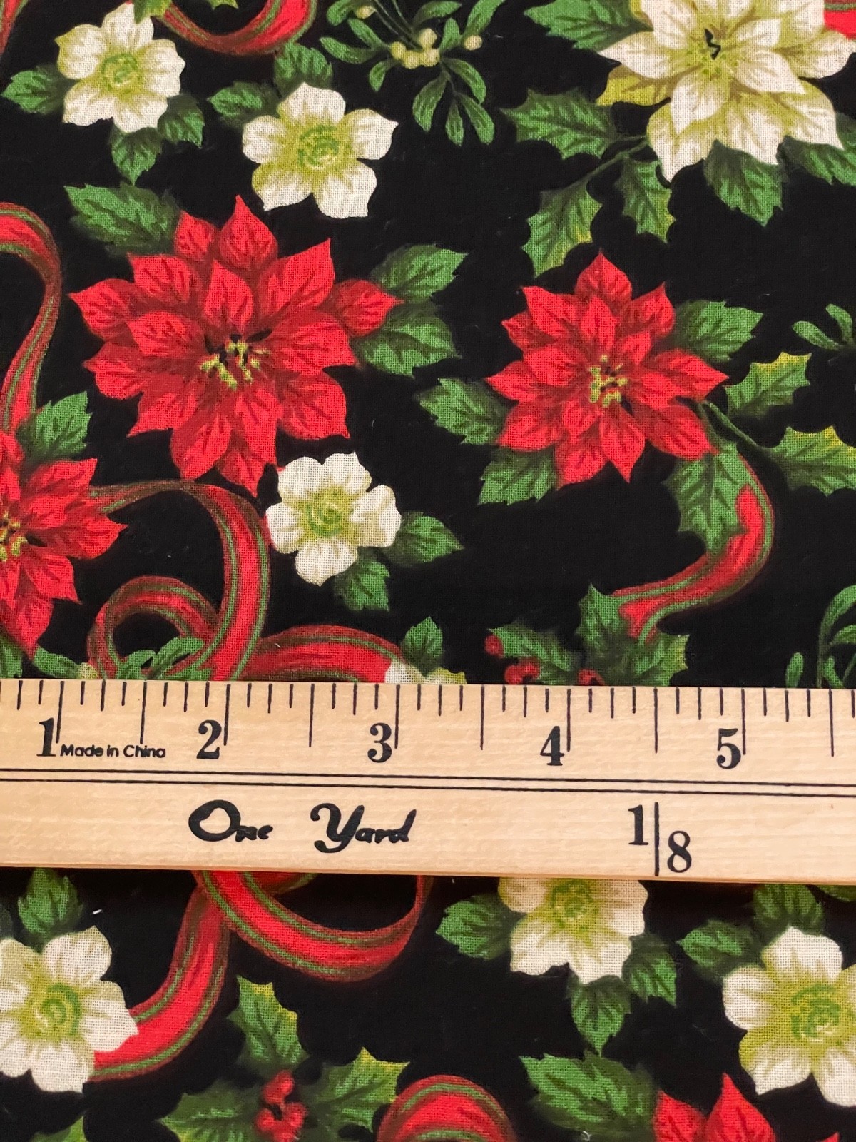 Santee Prints Premium Cotton Fabric - Poinsettia & Holly on Black by the 1/2 yd