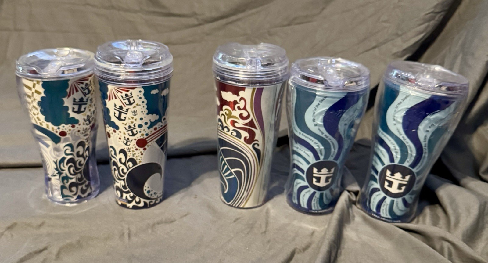 Royal Caribbean Coca-Cola Tumblers Lot of 5 Cruise Ship Cups New & Light Use