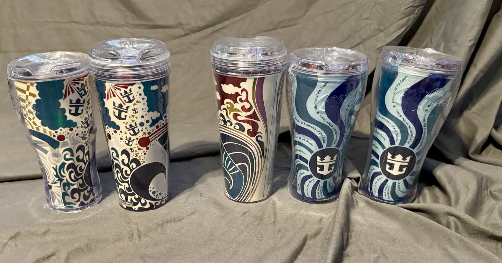 ? Sip in cruise style! This bundle includes five official Royal Caribbean Coca-Cola tumblers featuring bold nautical designs and the iconic Royal Caribbean Crown Anchor logo. These double-walled tumblers are great souvenirs from various ships across the fleet ? perfect for collectors, travelers, or everyday use!