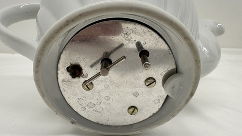 The music box does NOT work. Small chip in spout. Please see pics This vintage porcelain tea pot features a beautiful bouquet of pink roses and doubles as a music box. Made in Japan during the 1950s-60s, it adds a touch of elegance to any collection. The unique design and intricate details make it a perfect addition for tea lovers and collectors alike. The tea pot comes in its original packaging, making it an ideal gift for any occasion. Whether you're a fan of music boxes or simply love collecting unique tea pots, this item is not to be missed.