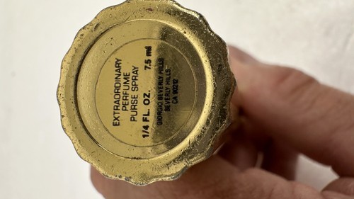 This is empty. This vintage Giorgio Beverly Hills perfume spray is a must-have for any collector of unique and extraordinary items. With a precise spray mechanism, this empty bottle is perfect for display or as a decorative piece. The brand is well-known for its high-quality perfumes, and this particular one is no exception. It's a great addition to any vanity or dresser and would make a wonderful gift for a loved one or a friend.