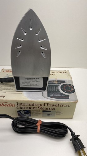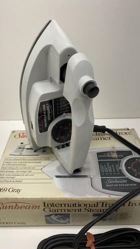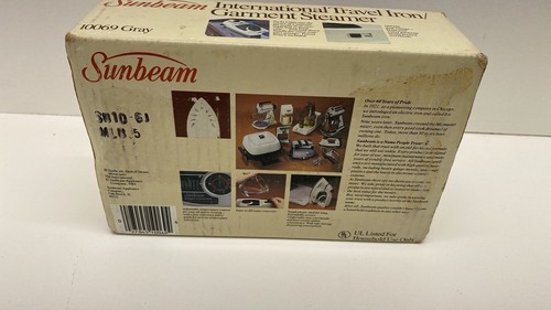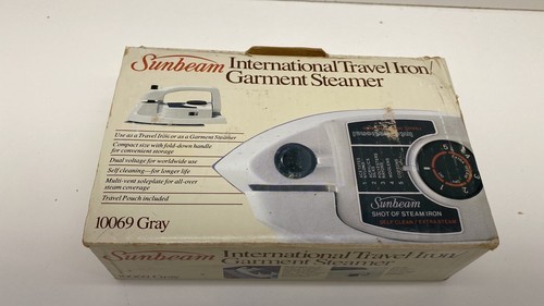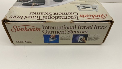 VINTAGE Sunbeam International Travel Iron/Garment Steamer 10069 Gray . Condition is New in beat up box. Shipped with USPS Priority Mail.