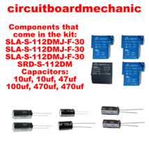Relays that come in the kit: SLA-S-112DMJ-F-30, SLA-S-112DMJ-F-30, SLA-S-112DMJ-F-30, SRD-S-112DM, Capacitors: 10uf, 10uf, 47uf, 100uf, 470uf, 470uf