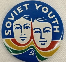 Soviet Youth 1970's Vintage Political Pinback Button Made in USSR by Norma 1.75”
