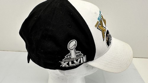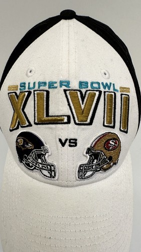 Show your support for the Baltimore Ravens with this NFL Super Bowl XLVII hat, which commemorates their victory against the San Francisco 49ers on February 3, 2013. This fan apparel is perfect for any National Football League (NFL) enthusiast who loves football, especially during the Super Bowl. The hat is made for those who want to show their team spirit and is a must-have for any fan's collection.