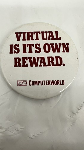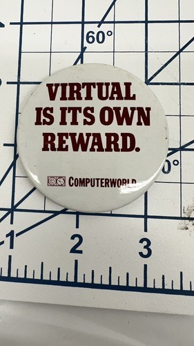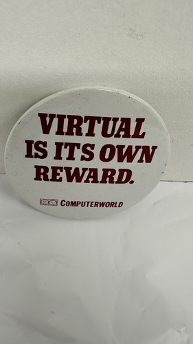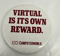 1980's? Virtual Is Its Own Reward Computerworld 2 1/4" Litho Advertising Pinback