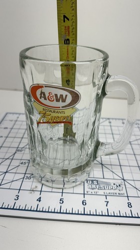 There is a stain on the A W label. Please see pics. This vintage A W Root Beer mug is a must-have for any soda or advertising collector. With a clear color and the iconic A W branding, this mug is a piece of history dating back to 1919. It has a 7-inch height and is made with high-quality materials.
