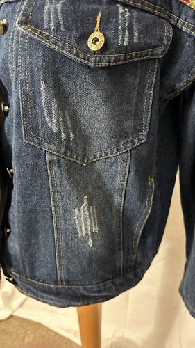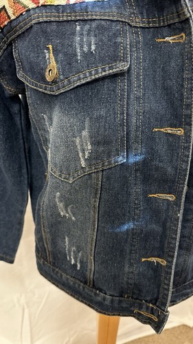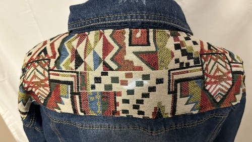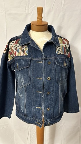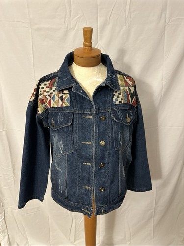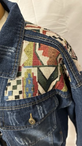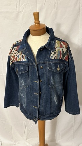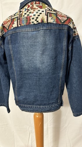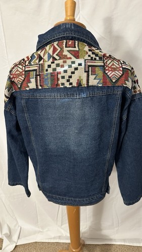 LRUD Womens Denim Jacket South Western Patchwork Tapestry Pattern Size Lrg