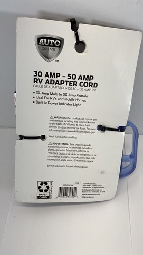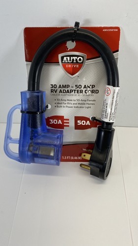 Auto Drive 30 Amp Male to 50 Amp Female 1.5' Adapter Cord RVs, Mobile Homes, S2+. Condition is New. Shipped with USPS Priority Mail.
