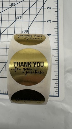 Bought and used some so less than 500 labels The "Thank You for Your Purchase Stickers" are round labels that are 1 3/8 inches in size and have a gold color. These stickers are designed for expressing gratitude to customers in a stylish and eye-catching way. With a height of 1.57 inches, these labels feature a "Thank You" message and are ideal for use in scrapbooking or adding a special touch to packages or products. The pack contains less than 500 labels, making them suitable for small businesses or individuals looking to add a personalized touch to their items.