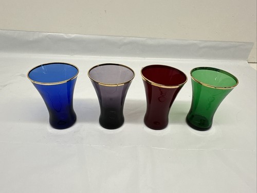 Vintage Gold Rimmed Jigger Set Blue Green Red And Purple