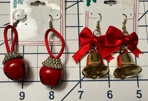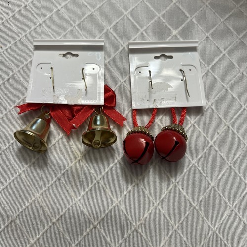 Bell Holiday Christmas Earrings Red And Gold Lot Of 2
