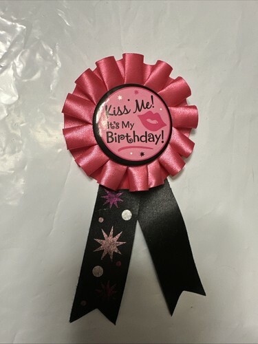 The "Kiss Me...It's My Birthday Award Ribbon" from the Amscan brand is a fun and vibrant party decoration perfect for a birthday celebration. This colorful ribbon features a playful message and belongs to the Black Pink Collection, adding a stylish touch to the party. Measuring 5.5 inches in size, this multicolored ribbon is a great way to make the birthday person feel special and stand out during the festivities. Perfect for adding a festive and celebratory atmosphere to any birthday party.