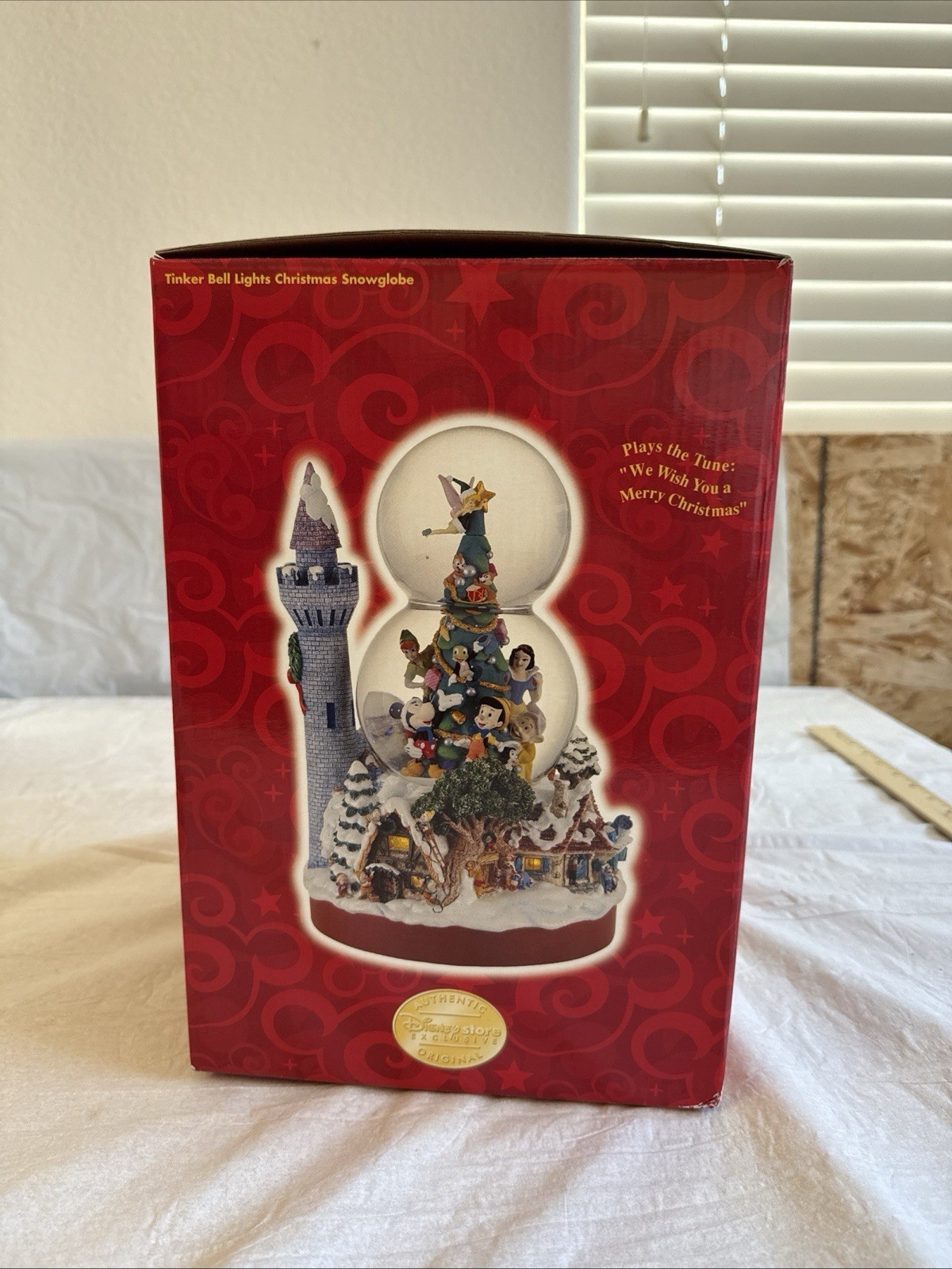 Disney Store Exclusive Tinkerbell Lights Christmas Music Snow Globe New In Box