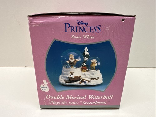 This Classic Disney Princess Snow White Double Musical Waterball is a must-have collectible for any fan of Disney. It features a beautiful design of Snow White and plays enchanting music when wound up. The item is brand new and comes from the Disney franchise, making it a perfect addition to any Disneyana collection. The year of production is unknown, but it has been kept in great condition and is ready to be displayed. The snowglobe is a wonderful decorative piece that captures the magic of Snow White and her world.