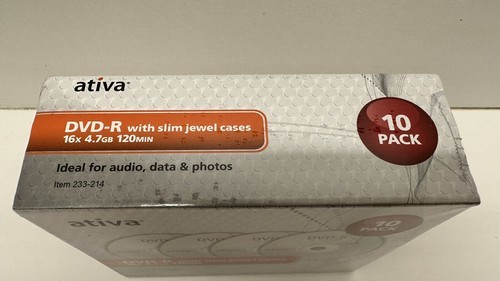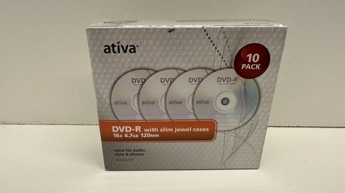 ATIVA DVD-R disc 10 Pk +Jewel Cases Slim 16x 4.7GB Factory Seal