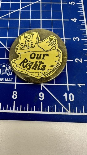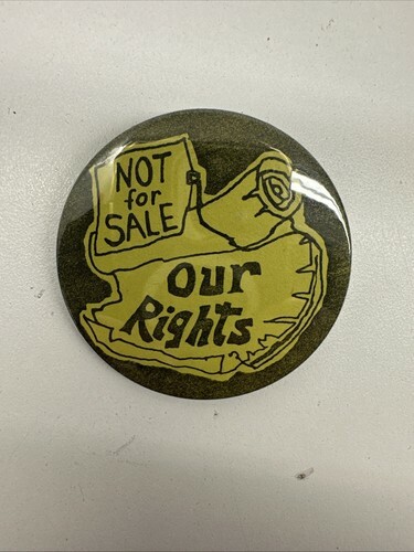 This vintage 2.25" button is a must-have for any collector interested in campaigns, elections, and politics. Featuring the phrase "Our Rights" and the iconic "Not For Sale" design, this button is a unique addition to any collection.