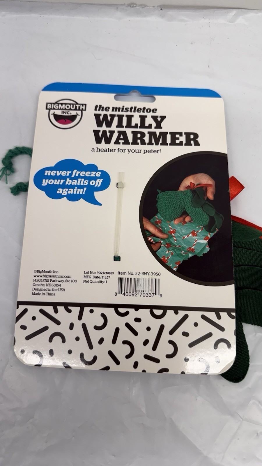THE CHRISTMAS MISTLETOE Willy Warmer Weener Knitted Crochet Sock - GaG Joke Gift