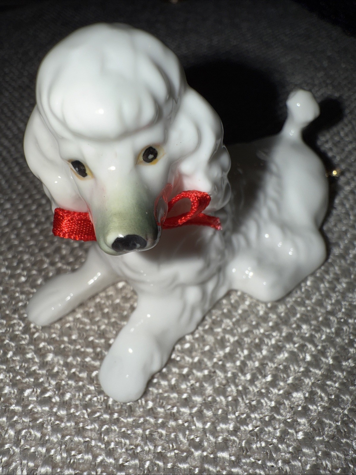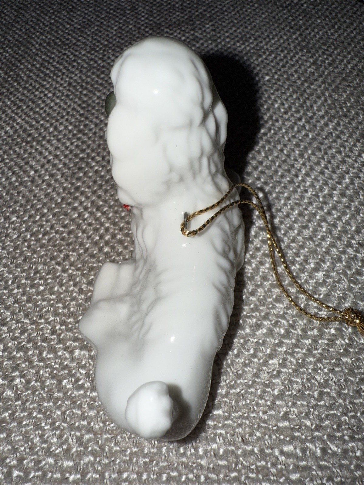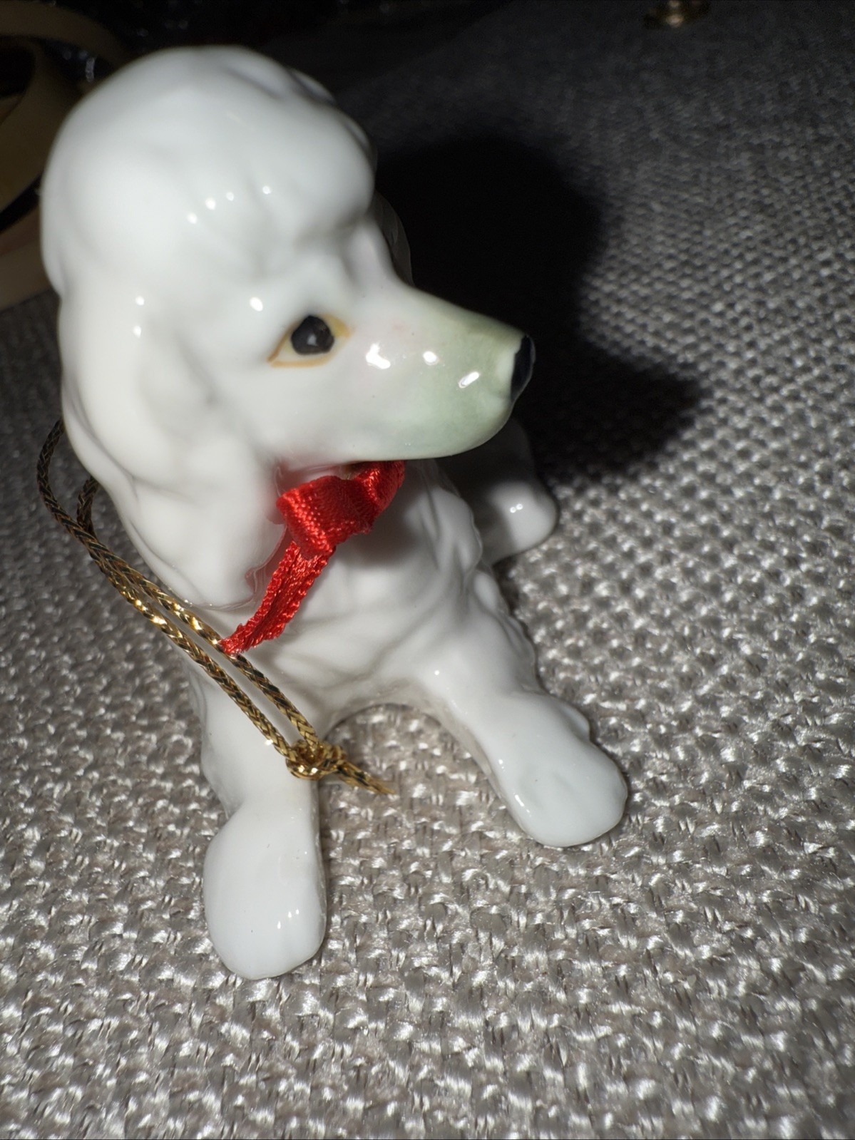 Vtg Bone China POODLE DOG Figurine 3" With Red Bow Ornament
