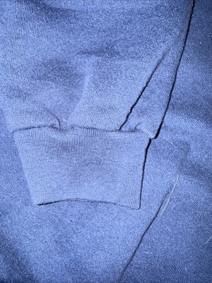 There is some cracking of the logo. The product is a vintage Denver Broncos NFL navy pullover sweatshirt featuring a graphic of player John Elway. It is officially licensed by the National Football League (NFL) and is in men's size XL. The sweatshirt is in a classic blue color and is suitable for both men and women. Made by Logo Athletic in Mexico, this unisex adult sweatshirt is perfect for showing support for the Denver Broncos during the regular football season.