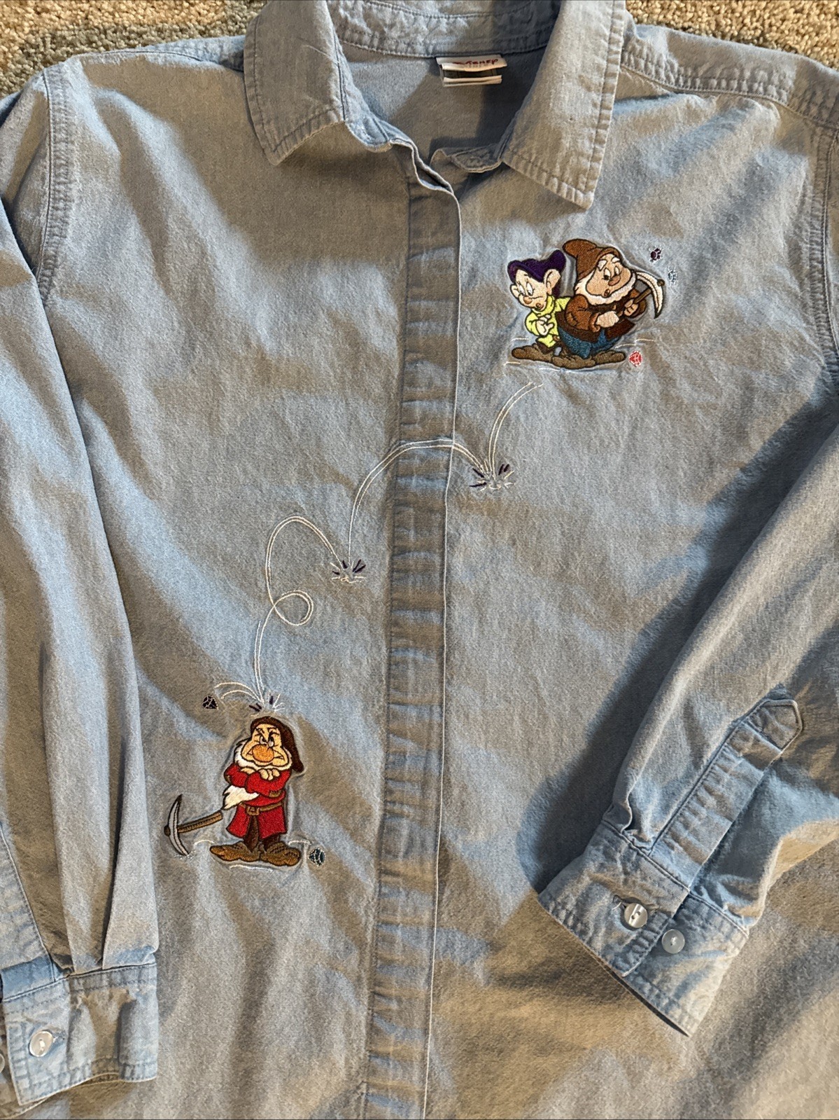 Vintage 90s Disney Snow White Seven Dwarfs Denim Jean Shirt Rare Size L