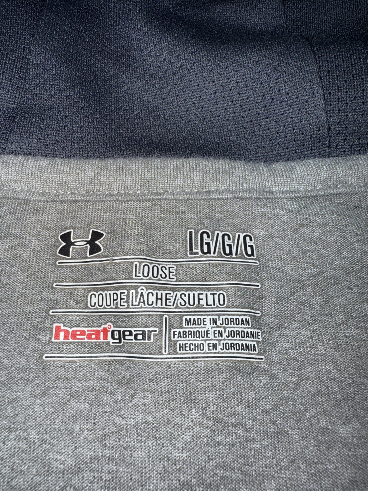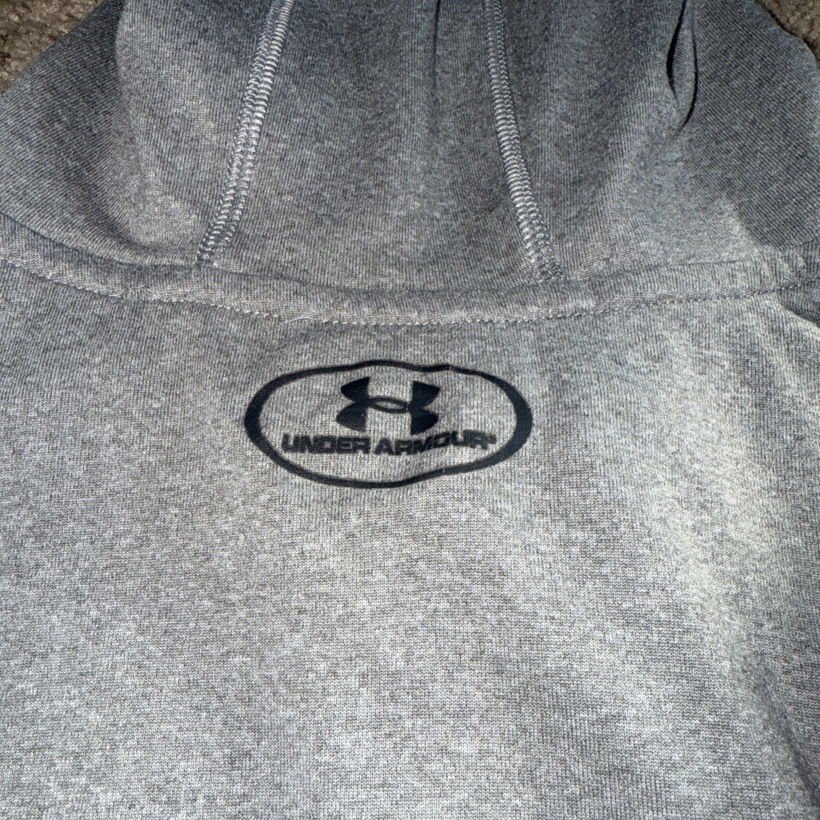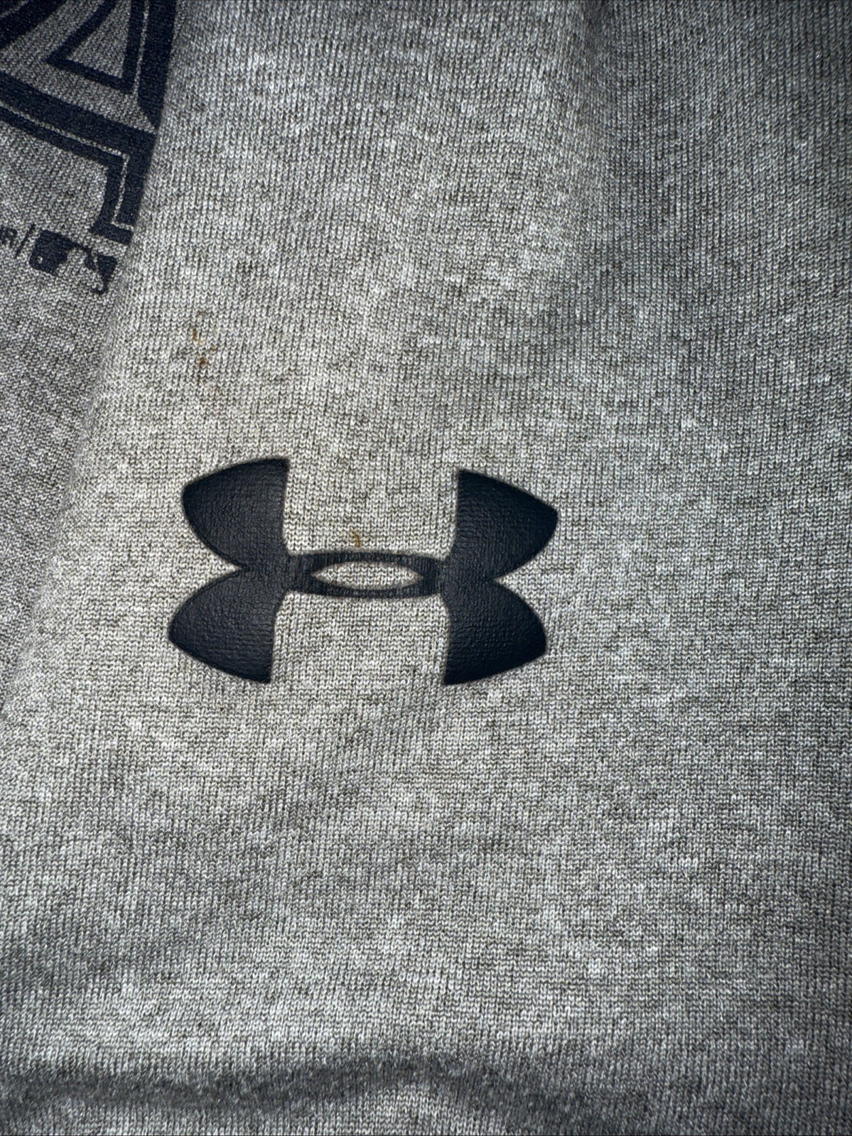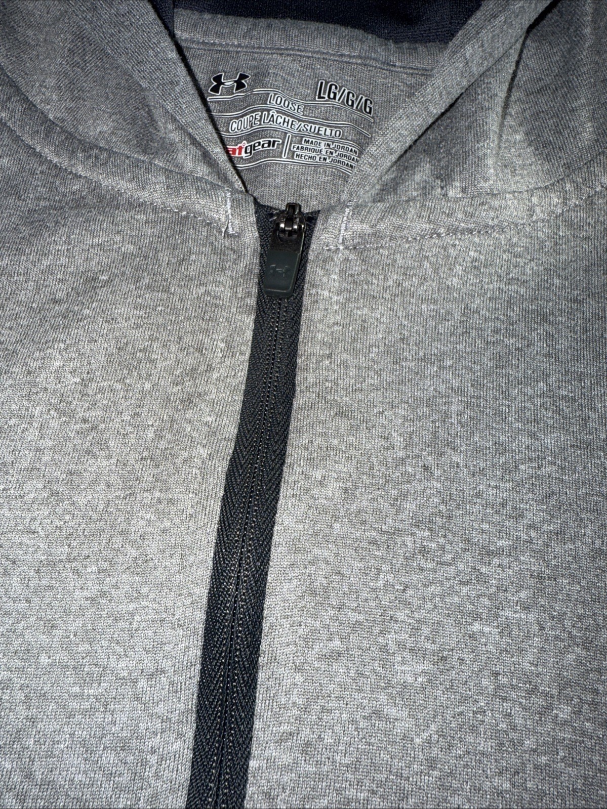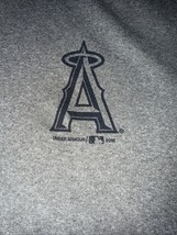 The product is a men's large grey zip hoodie jacket featuring the Under Armour brand, specifically designed for fans of the Los Angeles Angels baseball team. This unisex adult hoodie is perfect for supporters of the Major League Baseball team, offering comfort and style for any fan looking to represent their favorite squad. Like new.