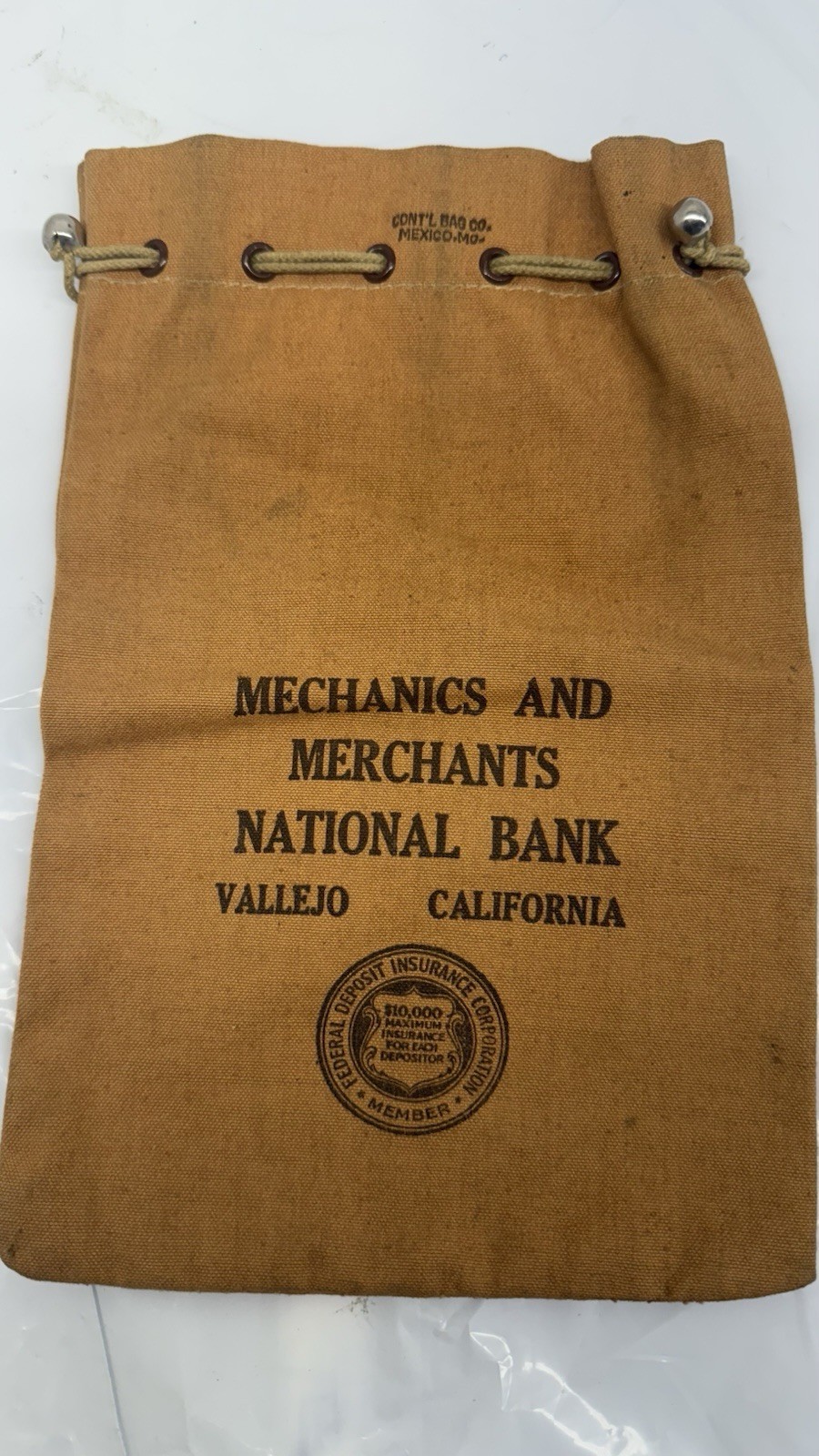 VTG Mechanics And Merchants National Bank Vallejo CA Coin Sack