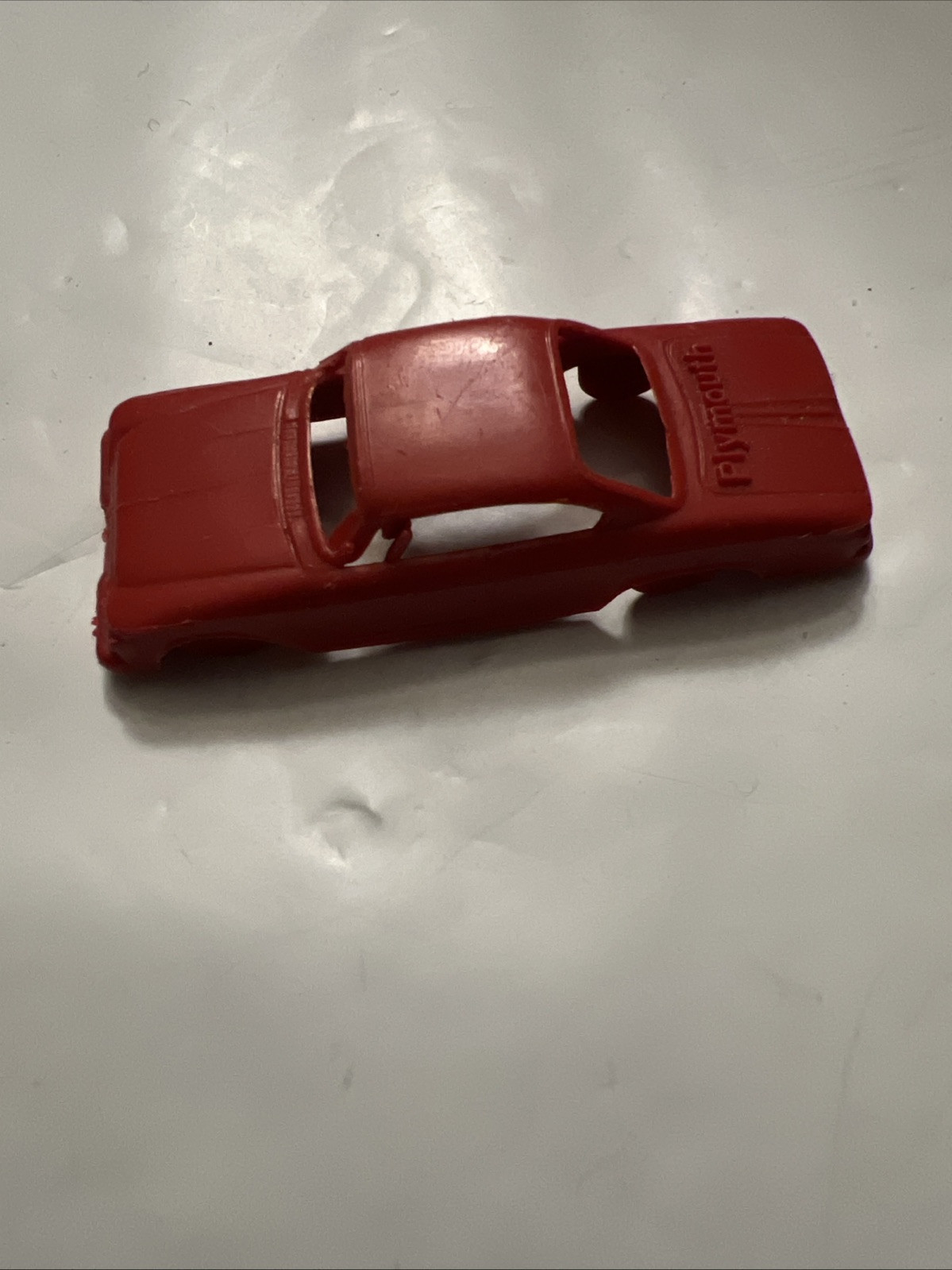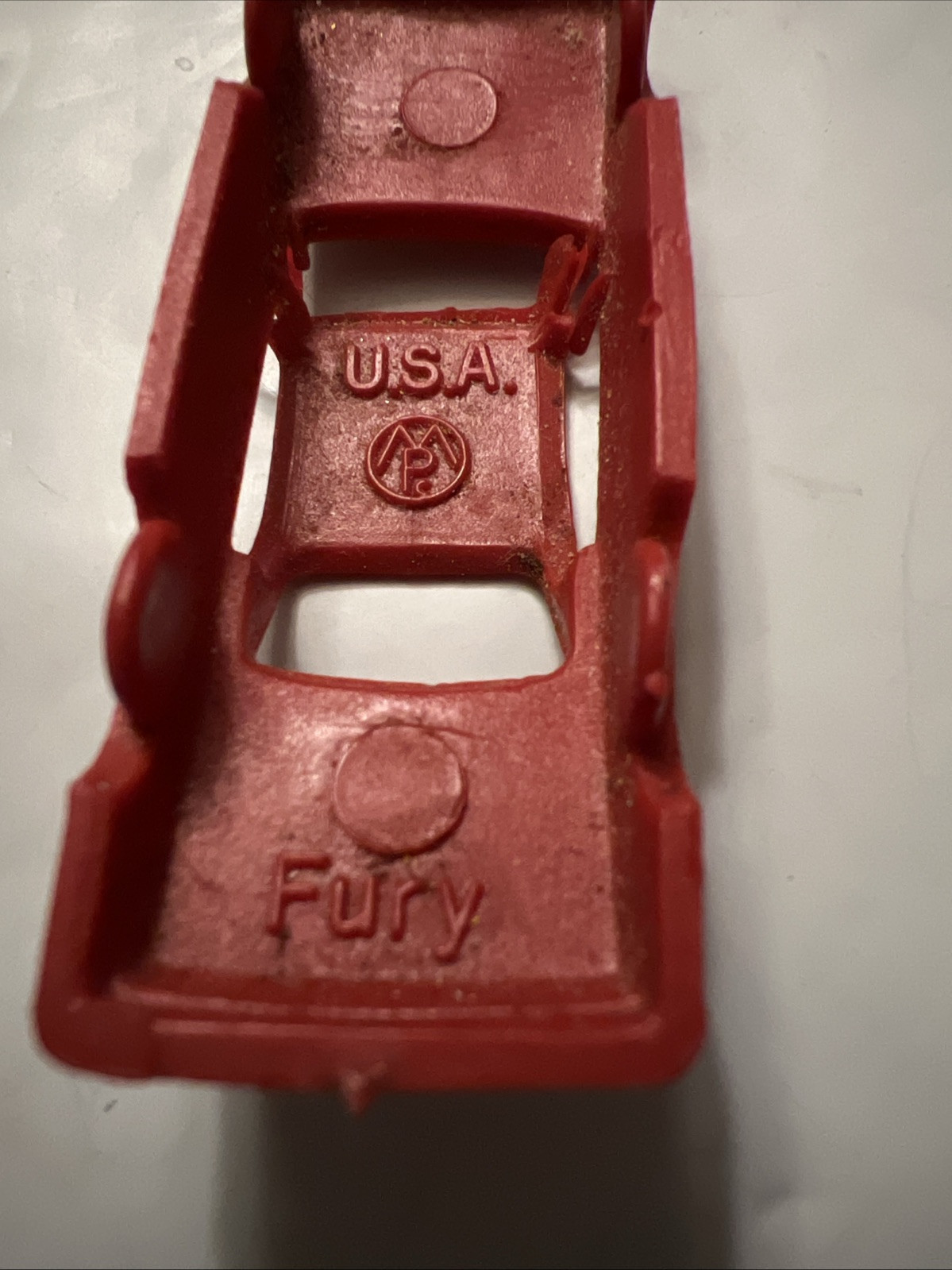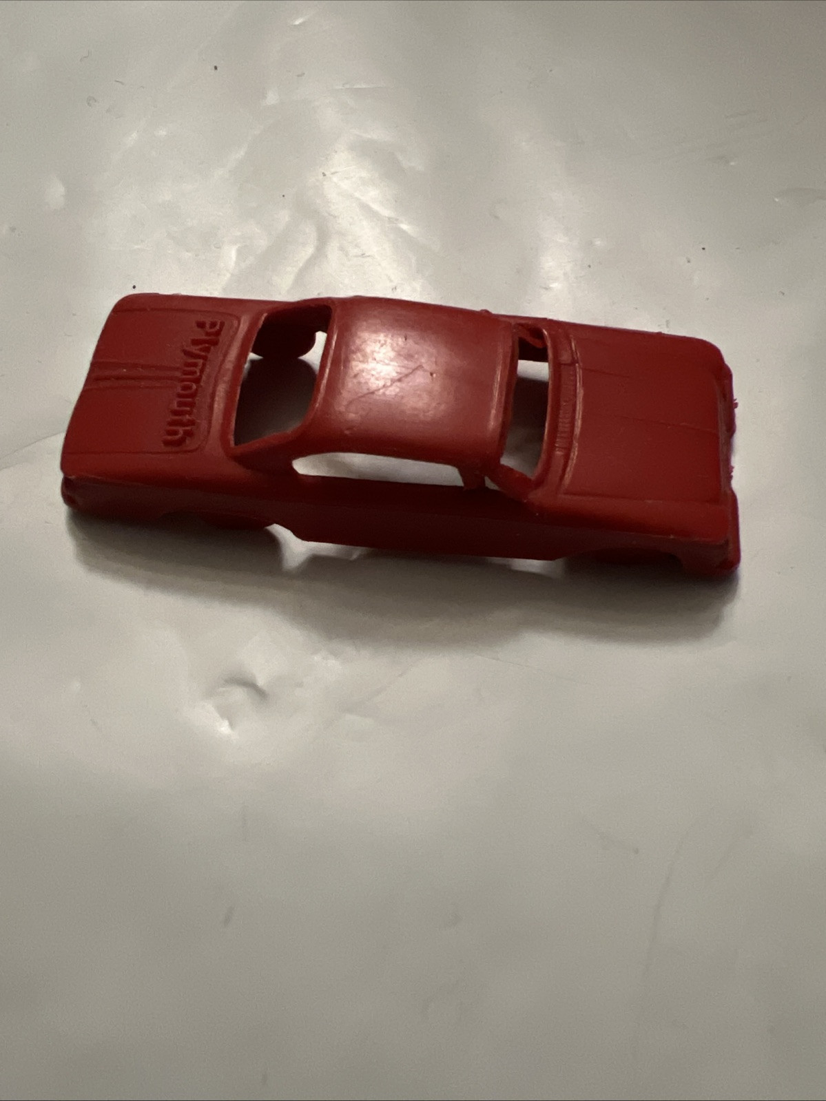 The product is a vintage primitive molded plastic car in the color red, specifically marked as a Plymouth Fury and made in the USA. It falls under the category of Diecast Toy Vehicles in the Toys Hobbies section. This collectible car is likely a small-scale model of the classic Plymouth Fury, featuring details and design true to the original car. The use of plastic as the material suggests it was likely produced in the mid-20th century, making it a nostalgic and unique piece for collectors of vintage toys and cars.