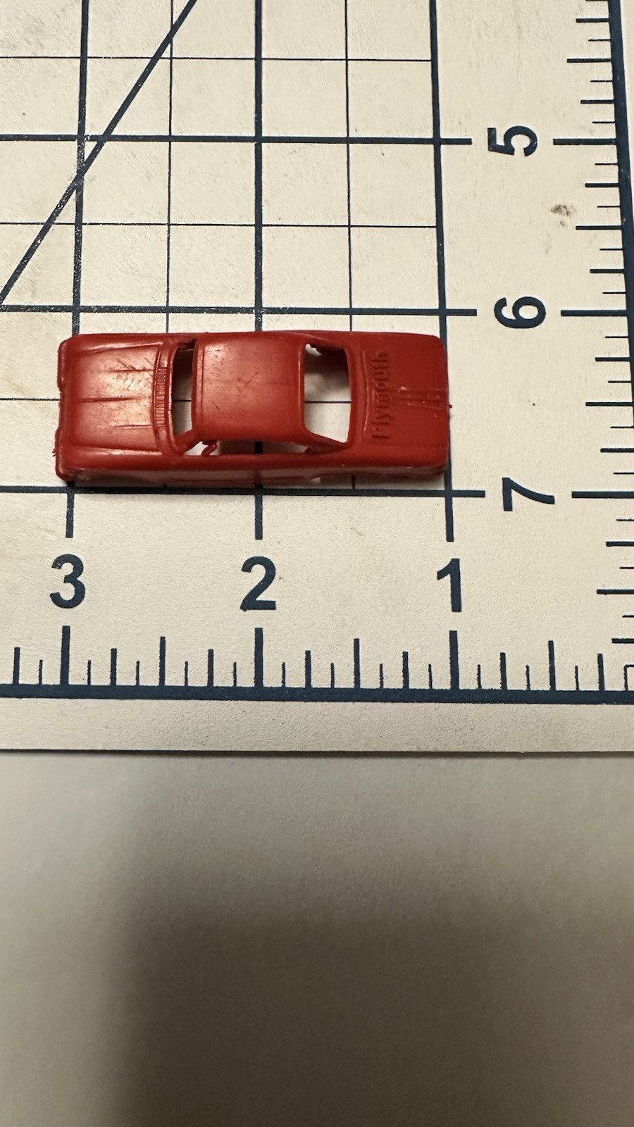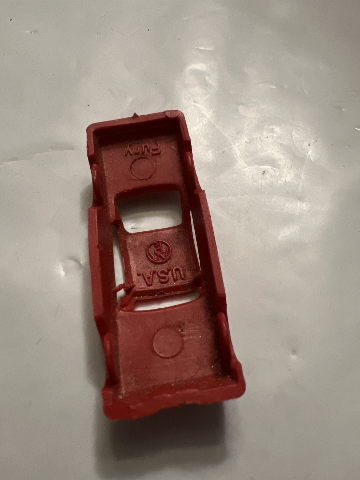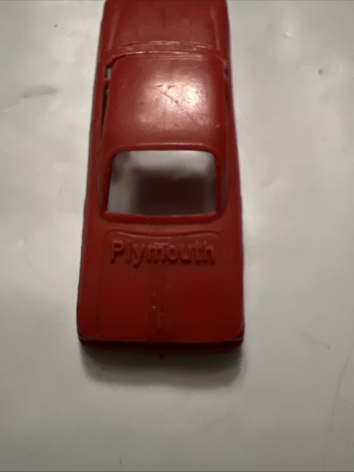 The product is a vintage primitive molded plastic car in the color red, specifically marked as a Plymouth Fury and made in the USA. It falls under the category of Diecast Toy Vehicles in the Toys Hobbies section. This collectible car is likely a small-scale model of the classic Plymouth Fury, featuring details and design true to the original car. The use of plastic as the material suggests it was likely produced in the mid-20th century, making it a nostalgic and unique piece for collectors of vintage toys and cars.