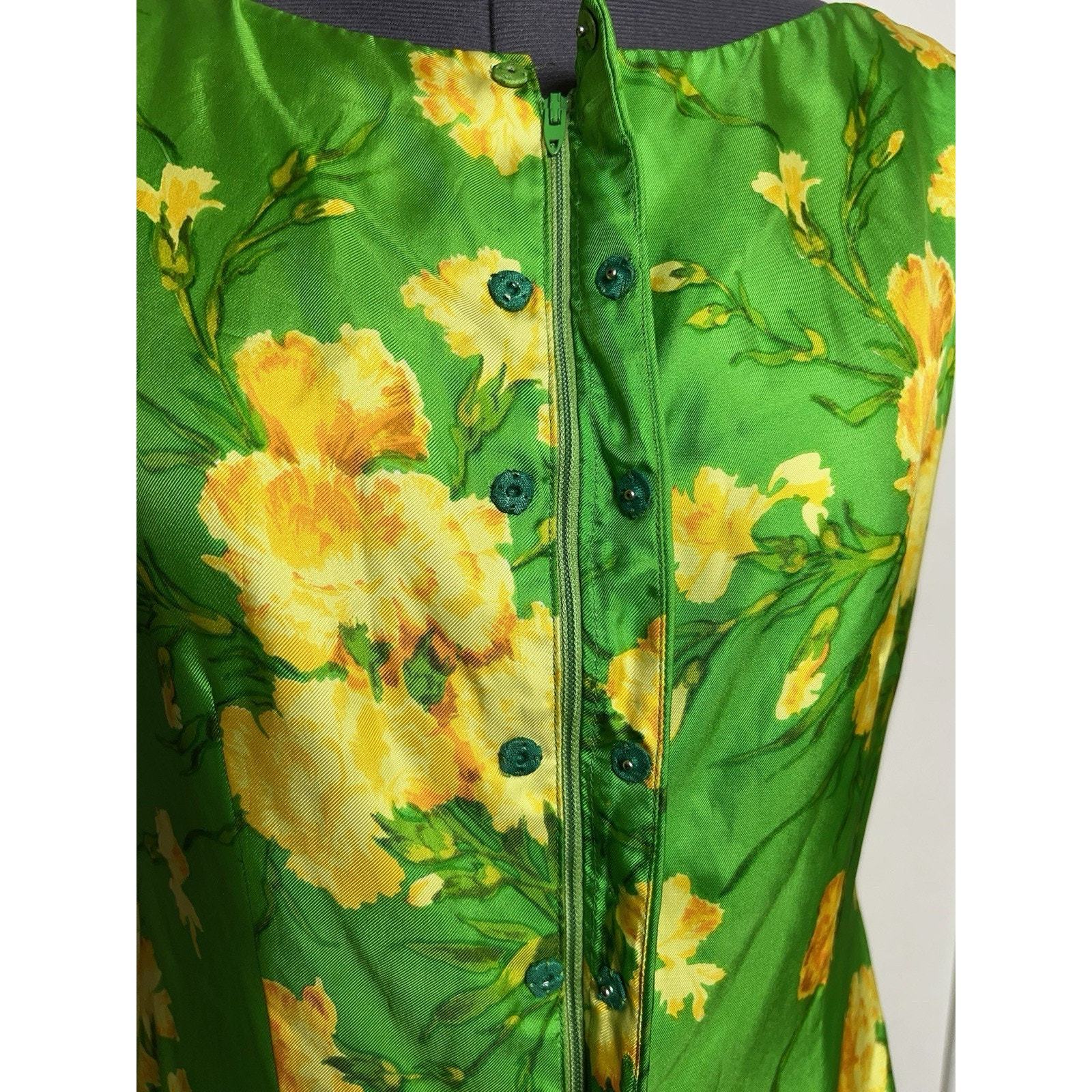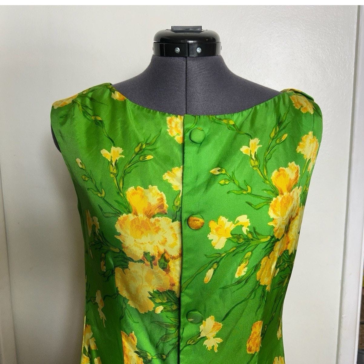 1960s Vintage Green Yellow Floral Cocktail and 11 similar items