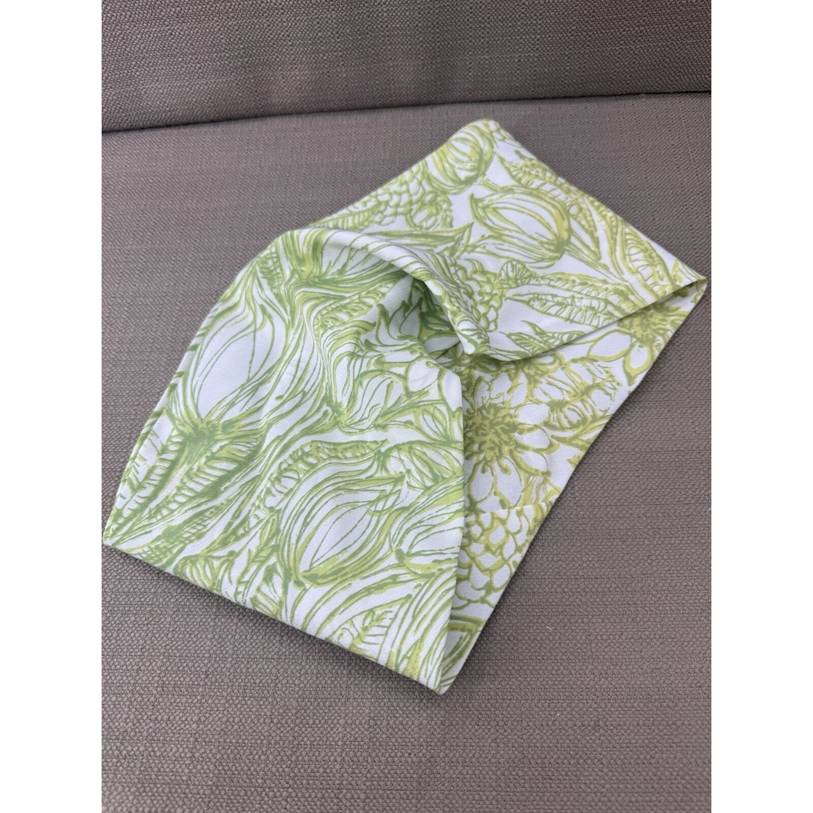 Vintage 1950s House of Nine dress featuring a striking green and white floral foliage print. This sleeveless dress includes its original matching belt, adding a classic touch to the silhouette. The dress is styled with a detached cowl neckline scarf, pleated skirt, and back metal zipper for closure. Timeless mid-century design, perfect for collectors, vintage fashion lovers, or special occasions.