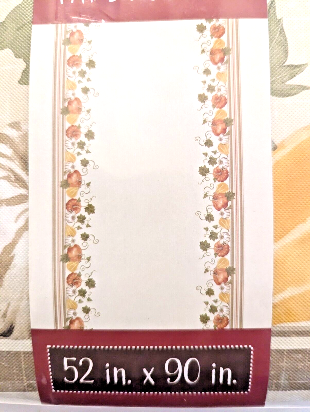 Autumn Comforts Vinyl Harvest Pumpkins Tablecloth 52 x 90-in Floral Dining NEW