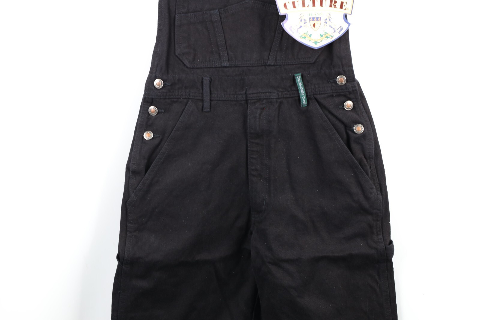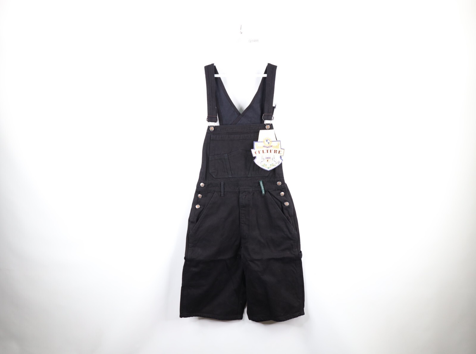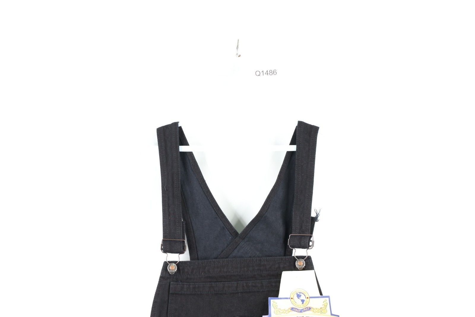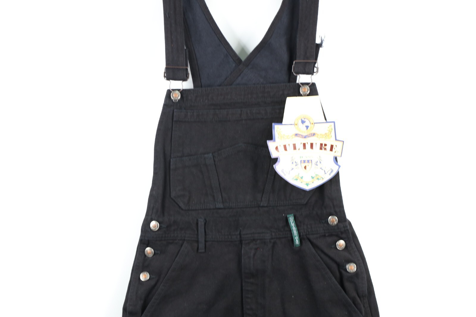 NOS Vintage 90s Streetwear Womens Small Denim Jean Shortalls Overalls Black