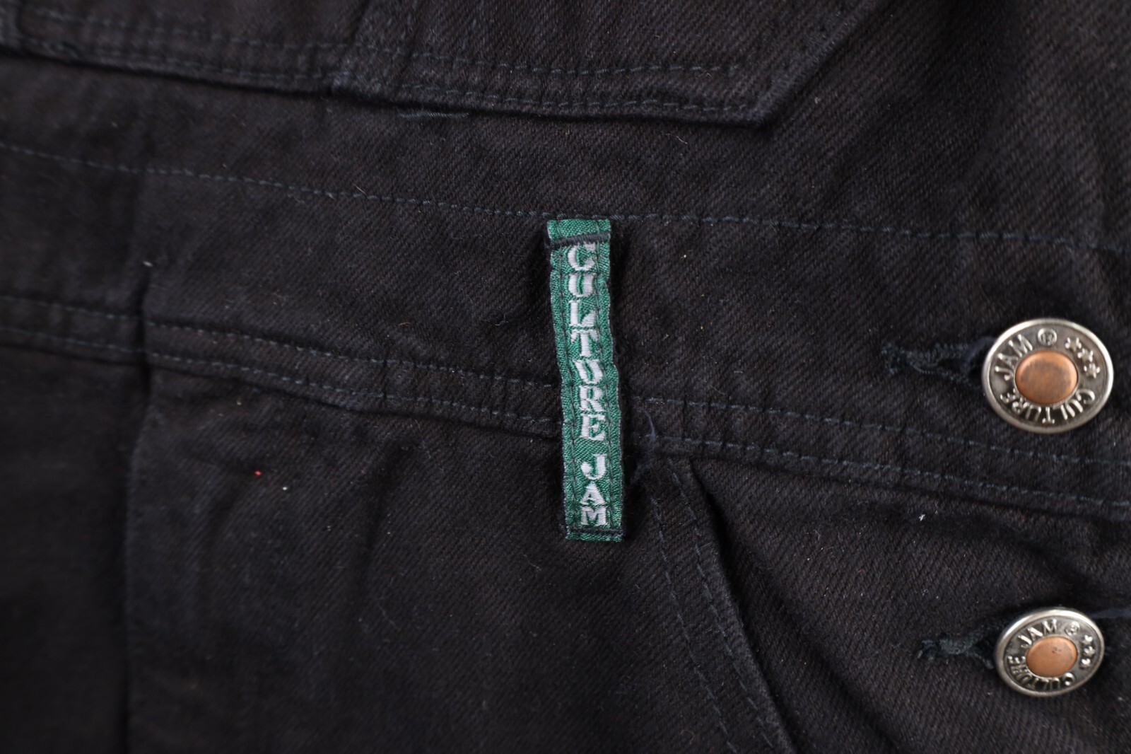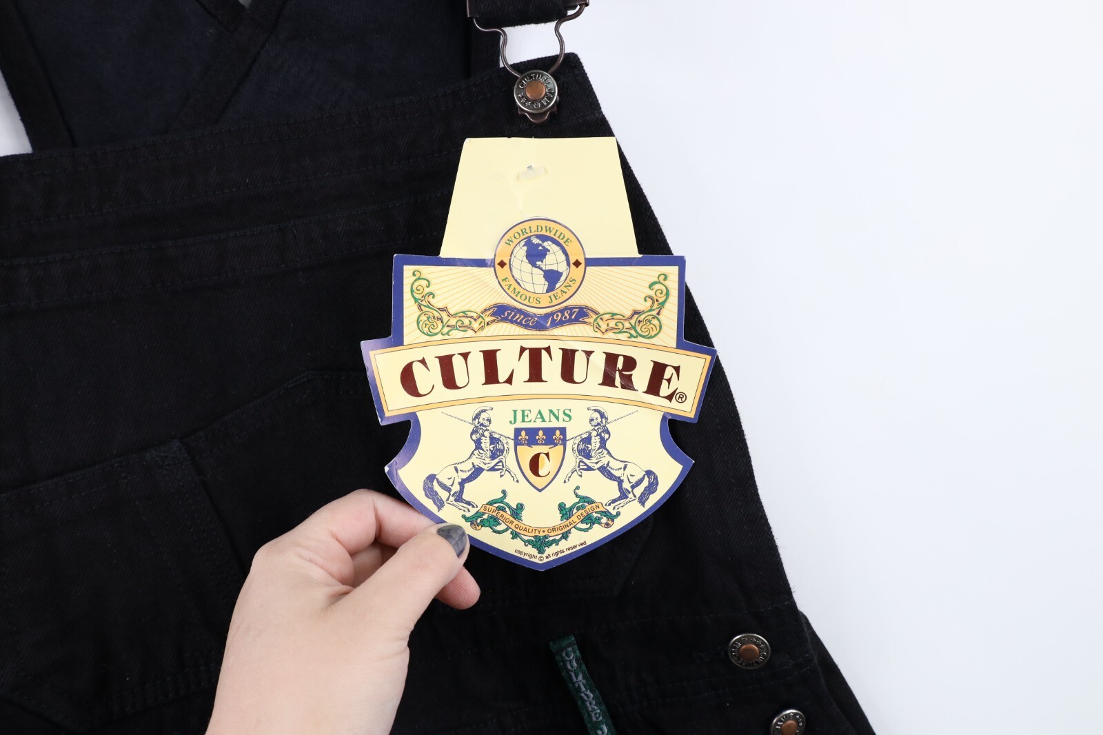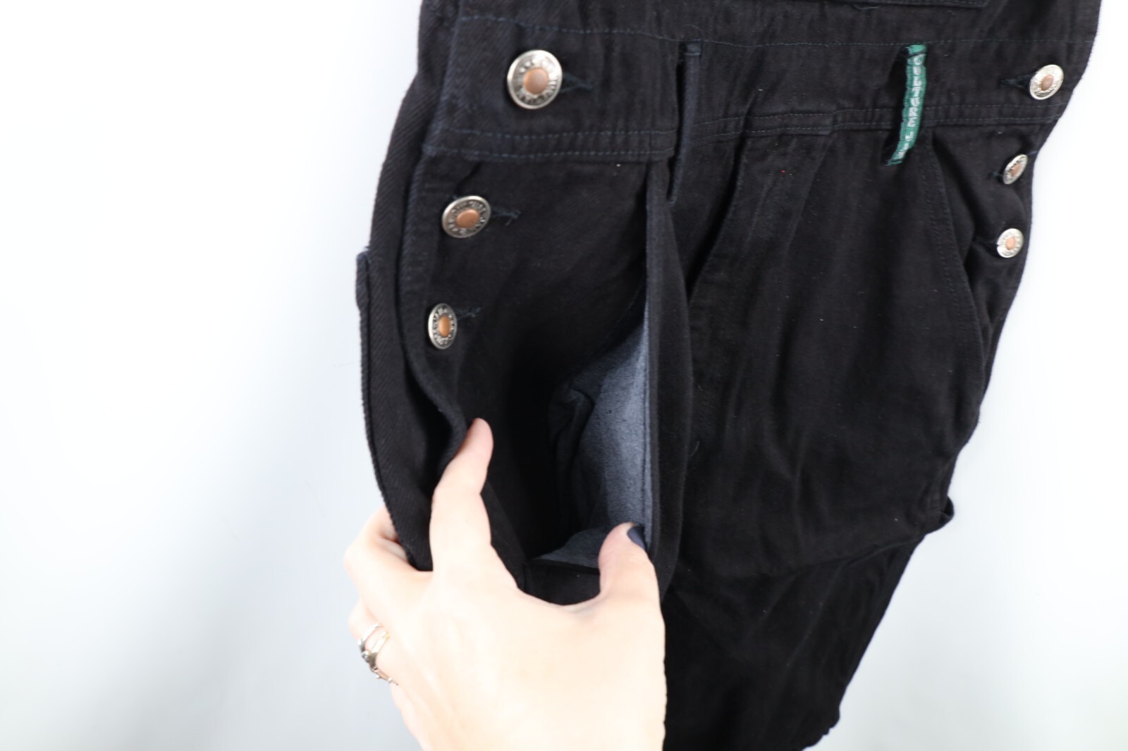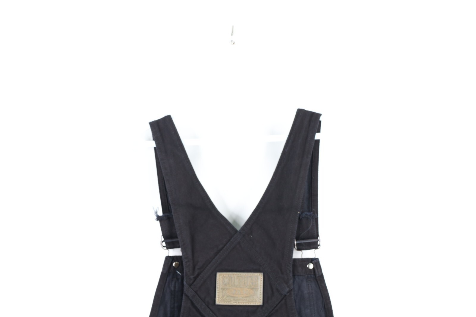 NOS Vintage 90s Streetwear Womens Small Denim Jean Shortalls Overalls Black