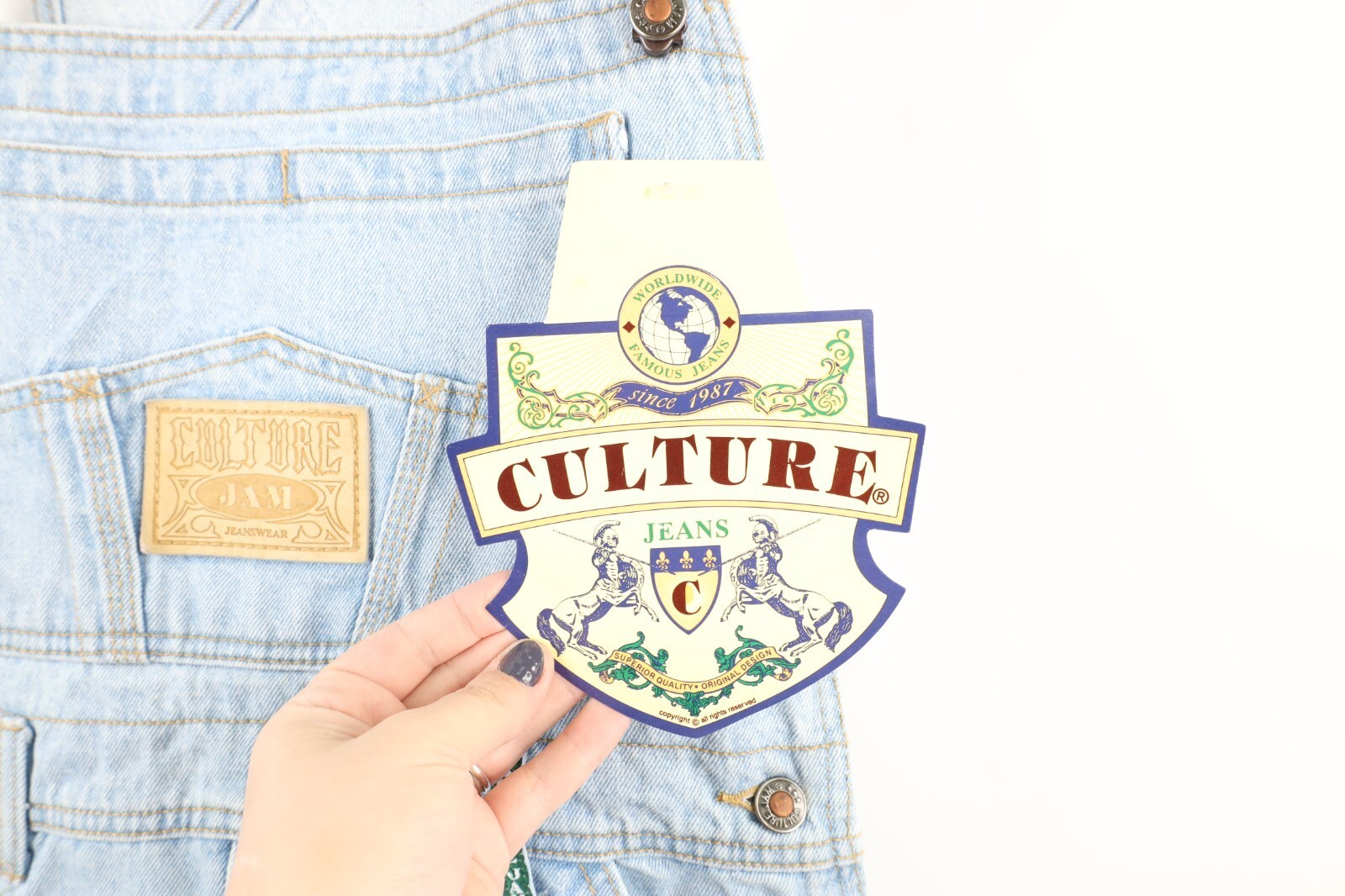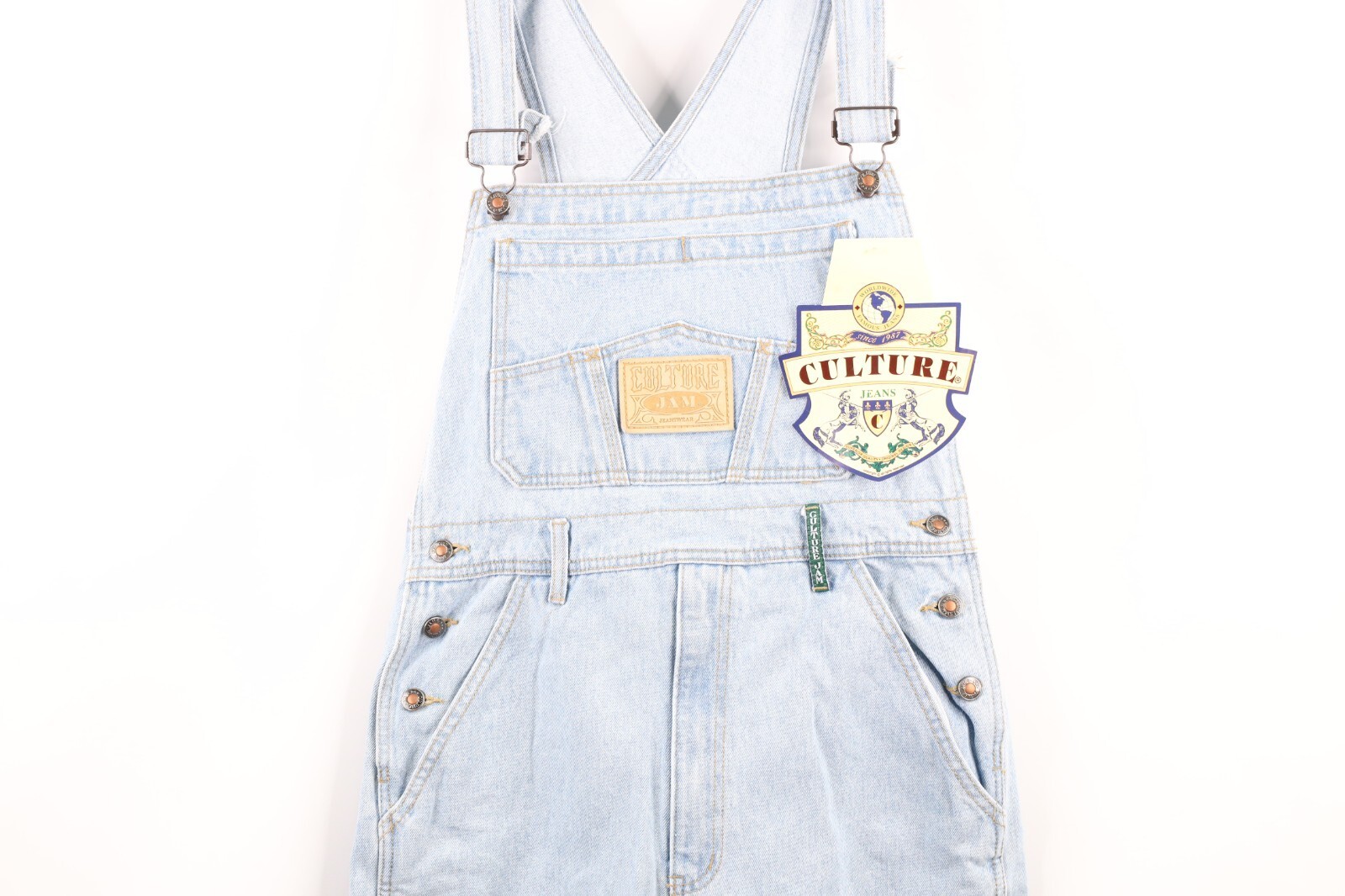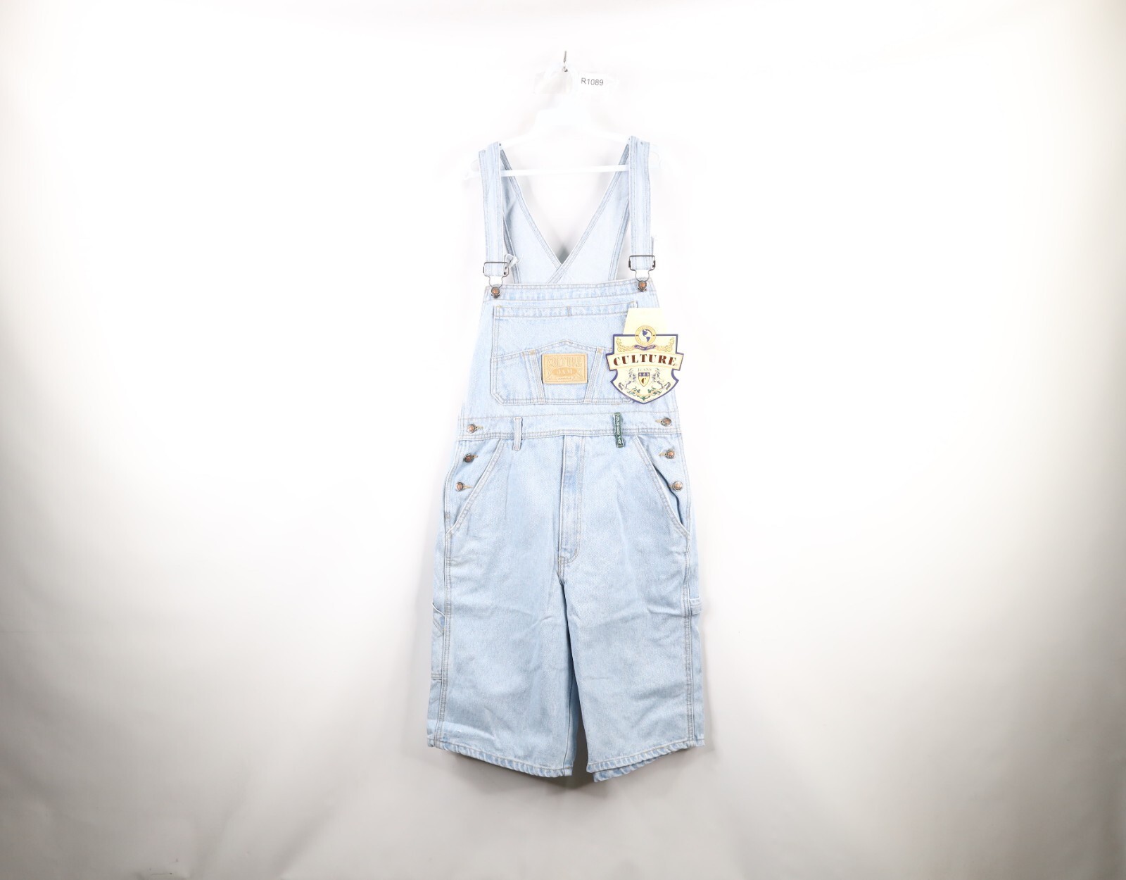 NOS Vintage 90s Streetwear Womens Size Medium Denim Jean Shortalls Overalls Blue