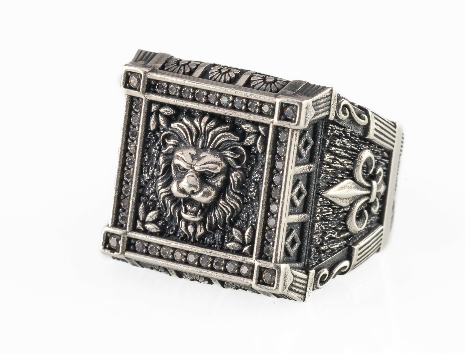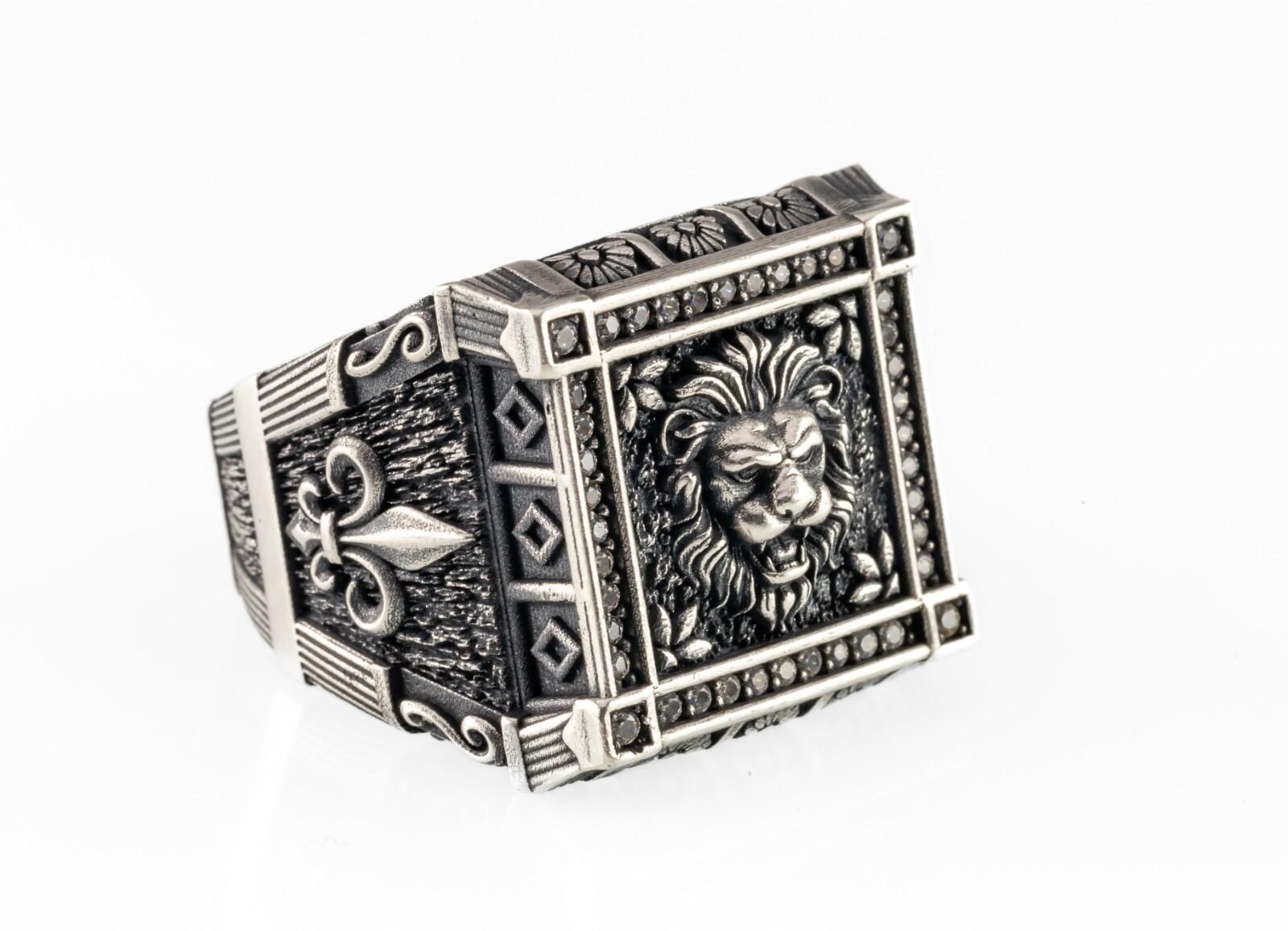 Diamante Argento Placca Uomo Anello Sigillo and similar items