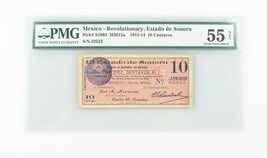 1913-1914 Mexico 10 Centavos AU-55 NET Estado de Sonora About Uncirculated S1063 1913-1914 Mexican ten centavos note (10) Issued by el Estado de Sonora Issued during the Mexican Civil War (1910-1920) Printed date of 12 de febrero de 1914 Sealed in a PMG holder with the title "Mexico - Revoluionary, Estado de Sonora // Pick# S1063 M3812a 1913-14 10 Centavos // S/N 32522" Condition: Graded as About Uncirculated 55 NET by PMG PMG comments: Foreign substance PMG certification number: 2502419-014 Serial number: 32522 Catalog number: Pick#S1063 Local Pick-up is available in our showroom. (Contact us for payment methods to pay on pickup.) California Buyers: 9% sales tax will be added. Returns Policy: About us: Continental Coin and Jewelry Company Web Department: Monday ? Friday, from 10:30am ? 6