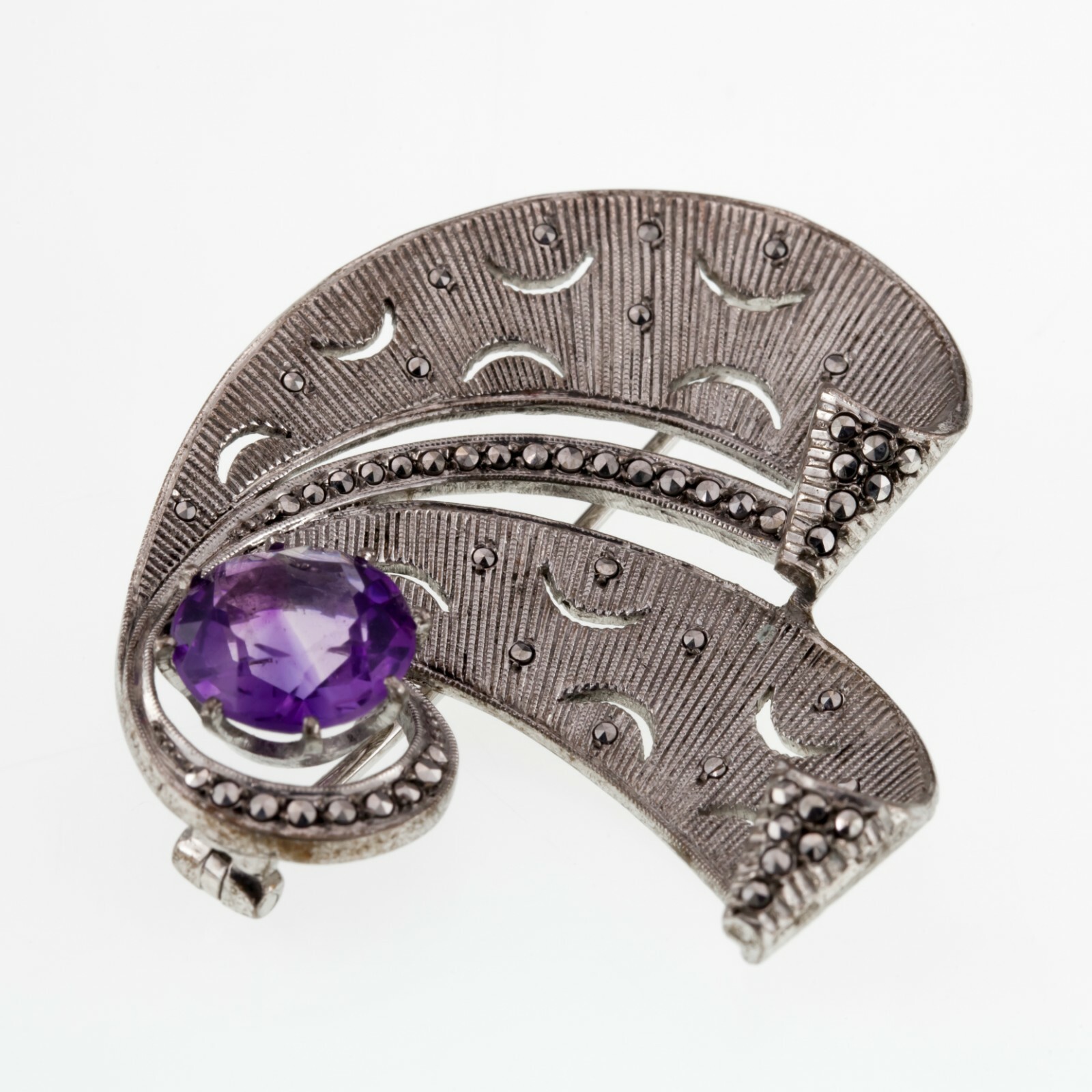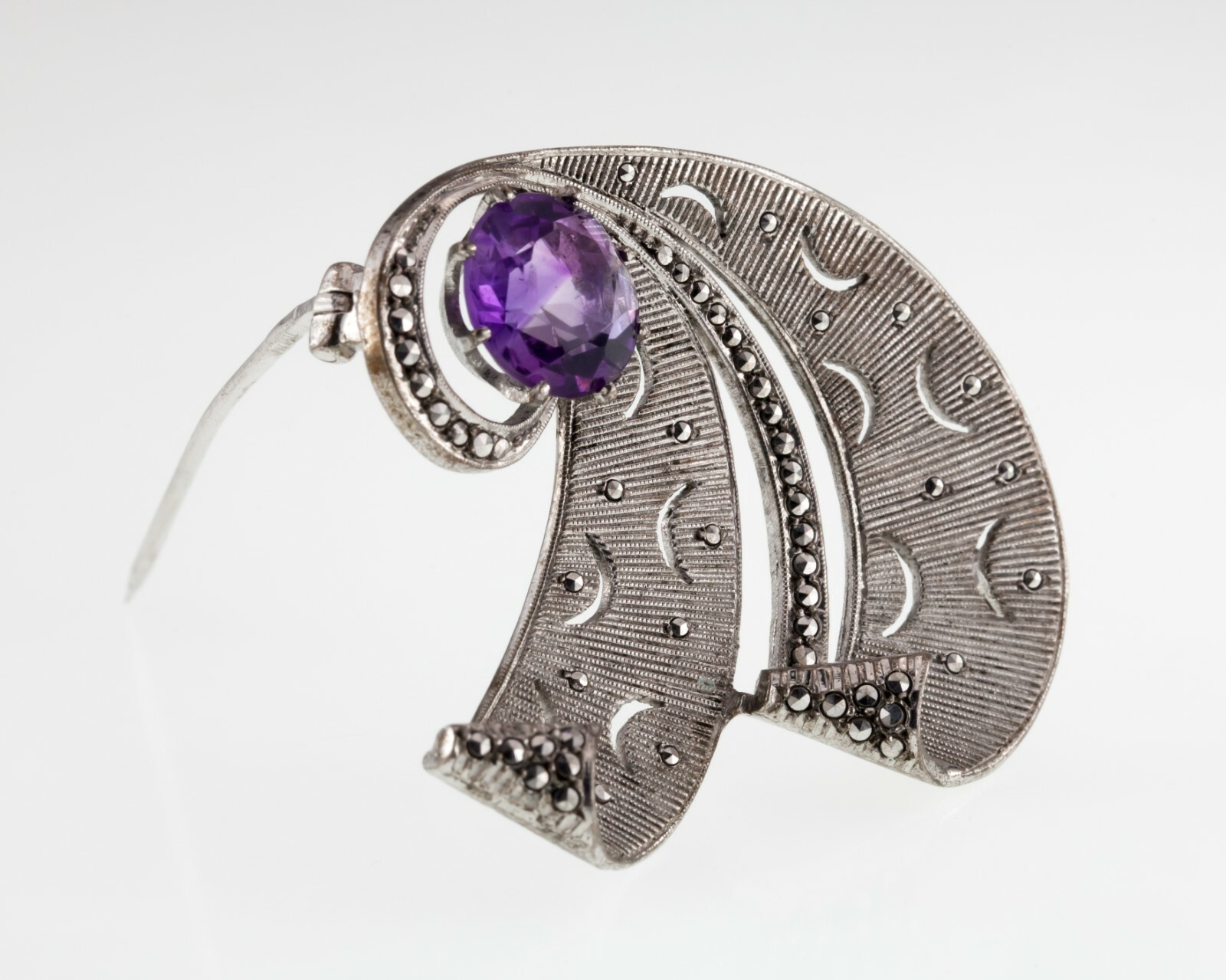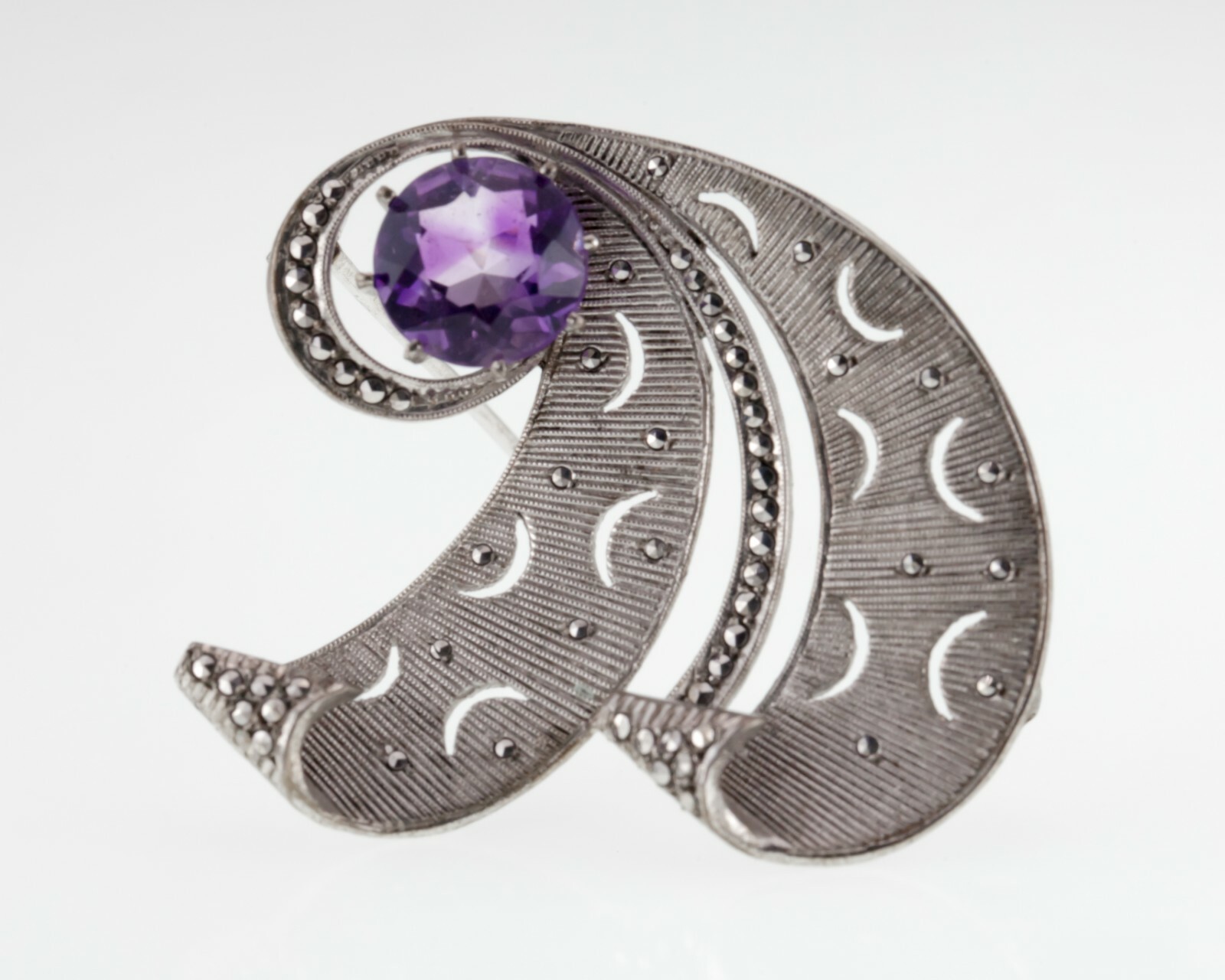 Theodor Fahrner Sterling Silver Amethyst and Marcasite Brooch Vintage