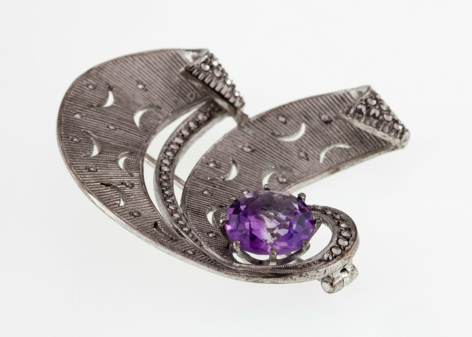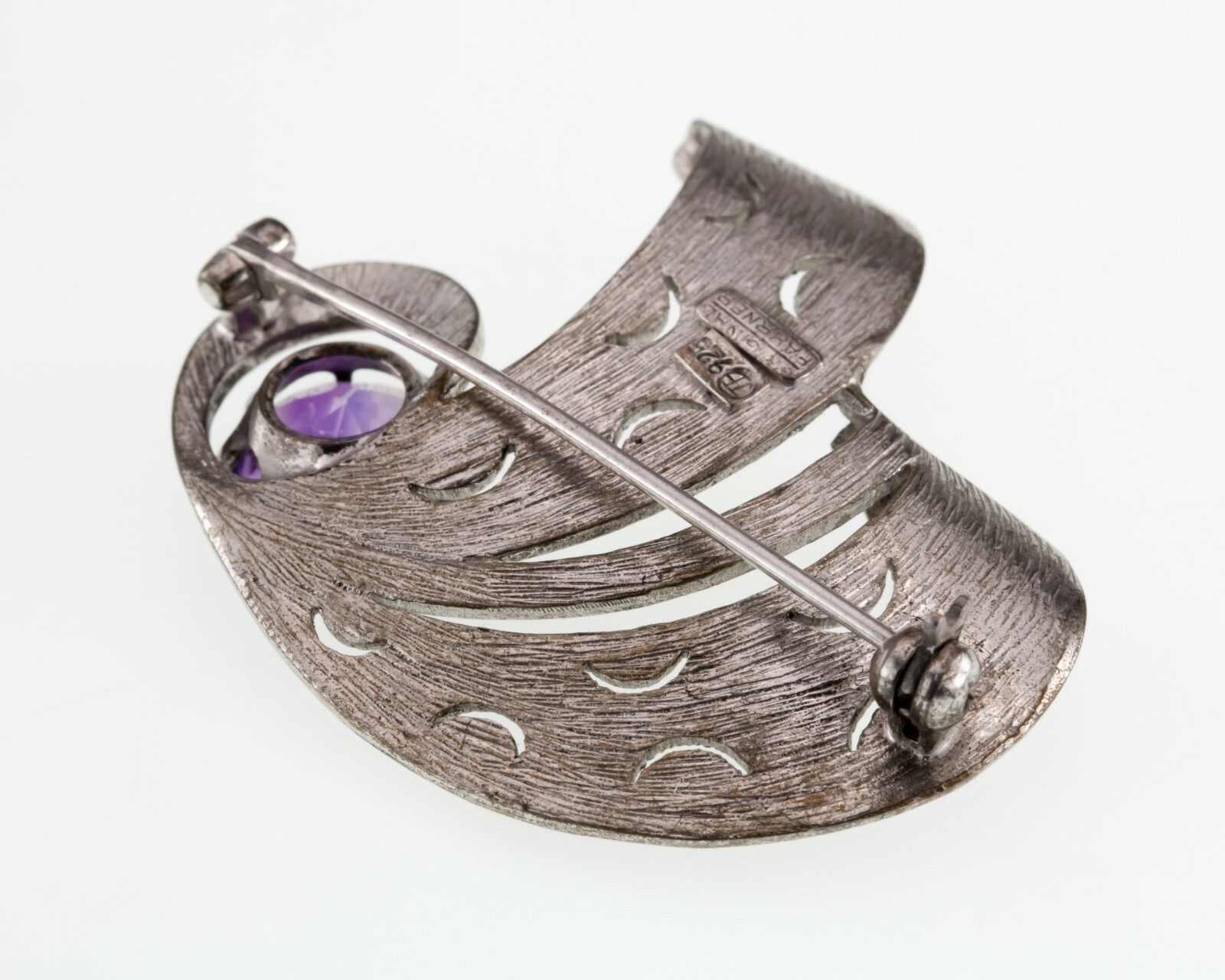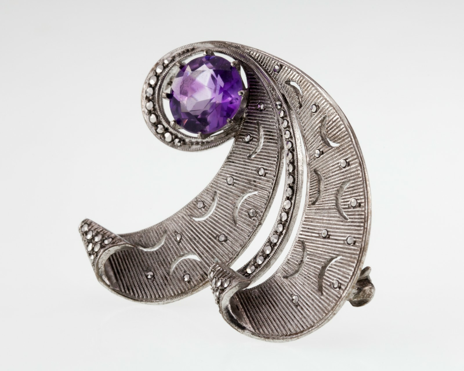 Theodor Fahrner Sterling Silver Amethyst and Marcasite Brooch Vintage