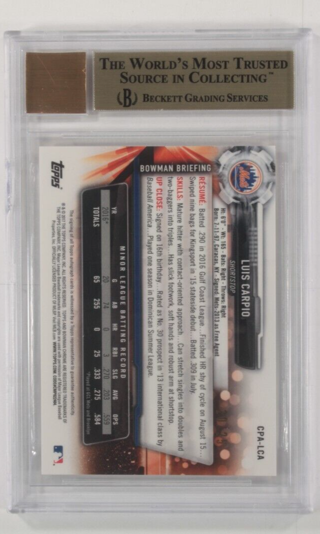 2017 Bowman Chrome Prospect Luis Carpio Auto & Orange Shimmer Ref BGS 10 #CPA-LA
