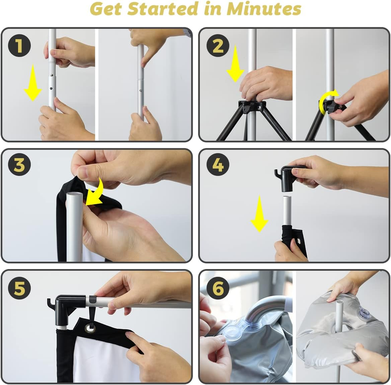 A portable fast fold-away projector screen provides an easy installation, compatible with all projectors. Just follow the instructions in the user manual, this projection screen stand takes only a few steps to set up, no need for any tools, which are easy to break down, set up, and store, is compact for storage and travel. If some parts are missing, please feel free to send an email to us, we are always standing by to help you.