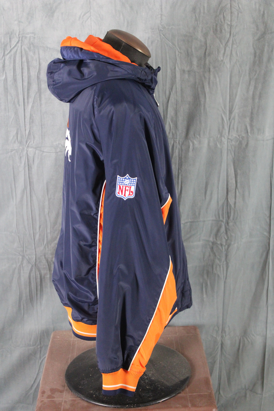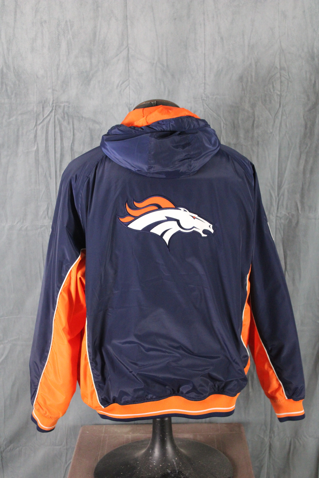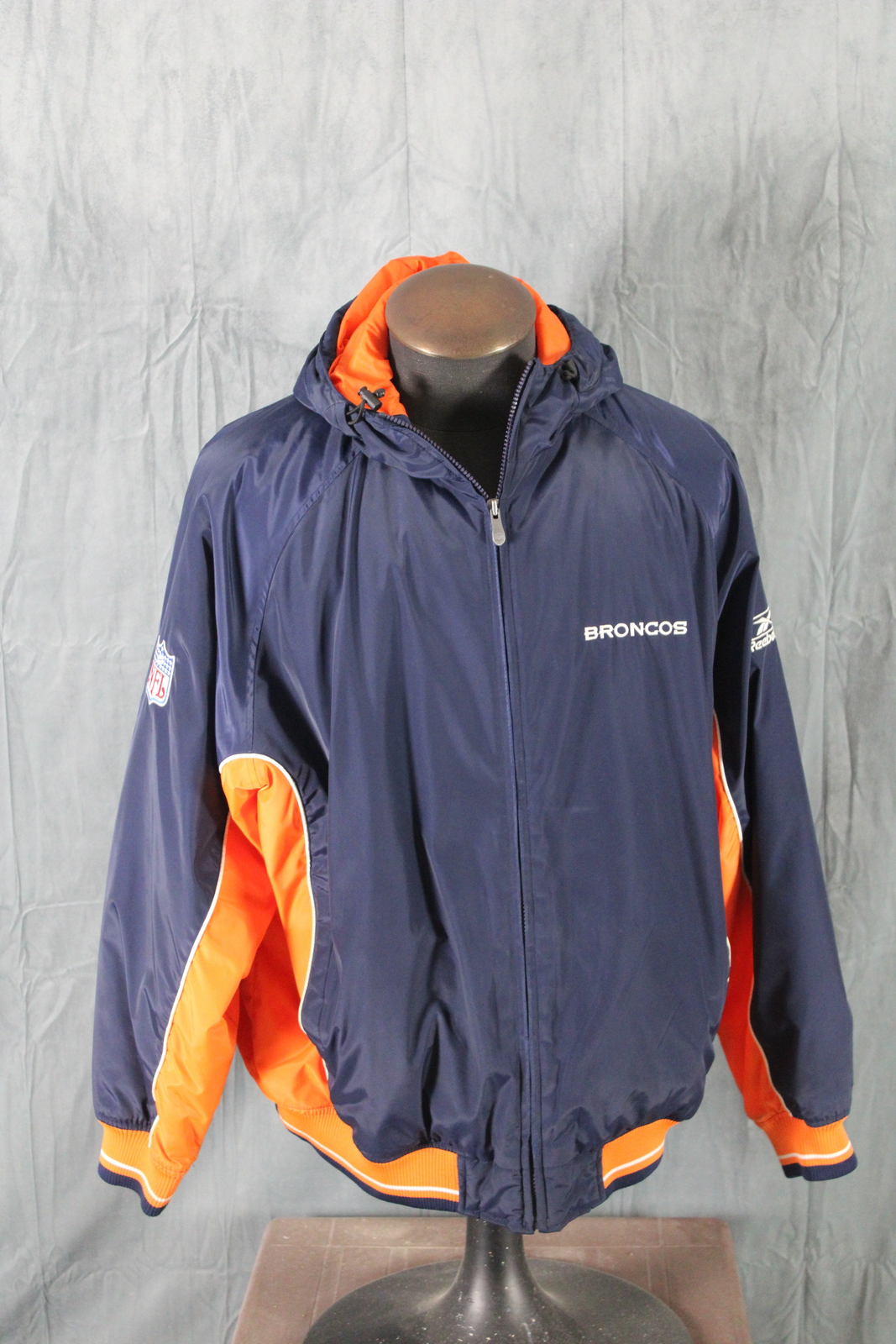 Up for sale is a retro Denver Broncos jacket by Reebok. It is a parka with a blue base colour and orange trim.The front of the jacket has Denver stitched in the left side. One sleeve has the Reebok logo stitched in and the other sleeve has the NFL logo stitched in. The back of the jacket has the Broncos logo crested on. What a great jacket do not miss out on it.