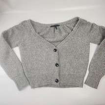 White House Black Market Grey Cropped Cardigan Sweater Sz M Ruched Shoulders