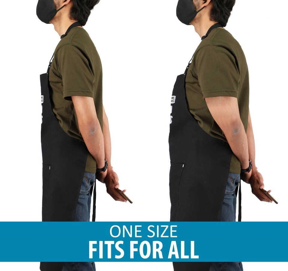 ?3 Large Pockets?You know looking for cooking utensils can be a hassle sometimes. However, with this apron, you do not need to run looking for cooking essentials. This apron has 3 large size pockets to keep your tong, spoons, spatula, etc near you while cooking