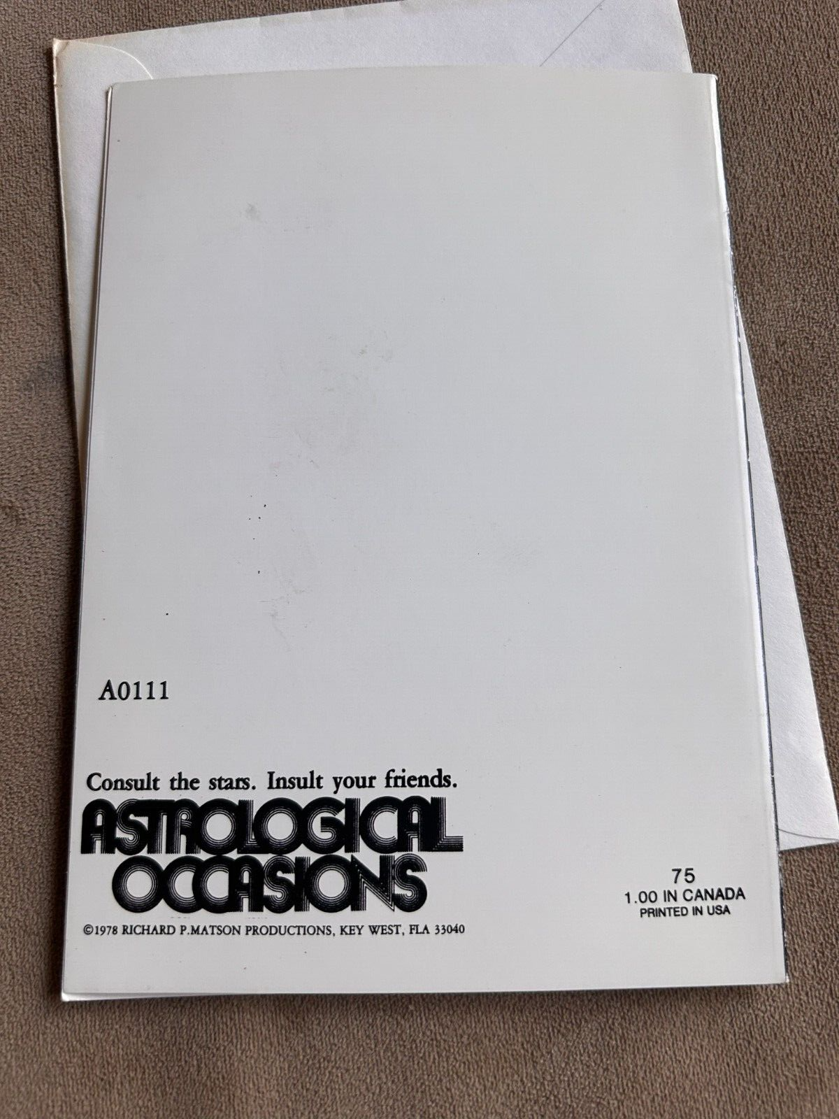 AQUARIUS Zodiac Astrological occasions Richard P Matson satire Greeting Card 1978.