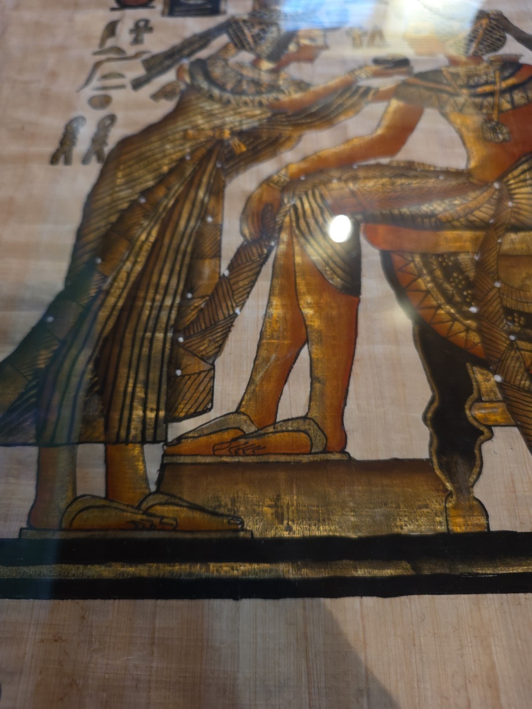 Authentic Egyptian Papyrus Hand-Painted Framed King Tut & Wife Gold Shrine 26x17