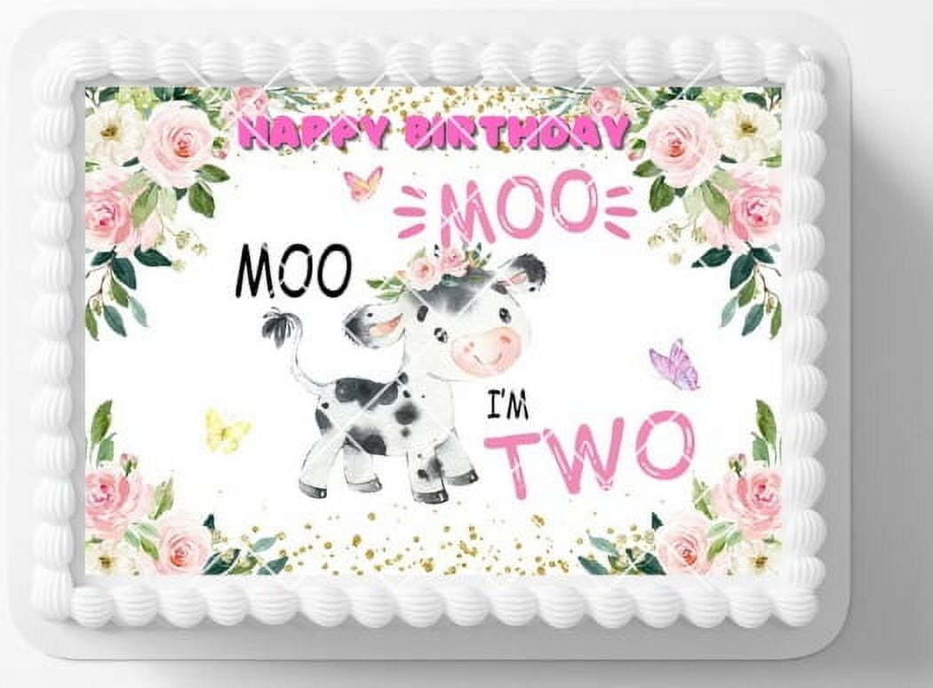2 year Old Farm Barnyard Moo Cow Image Edible Cake Topper Birthday Cake Decorati