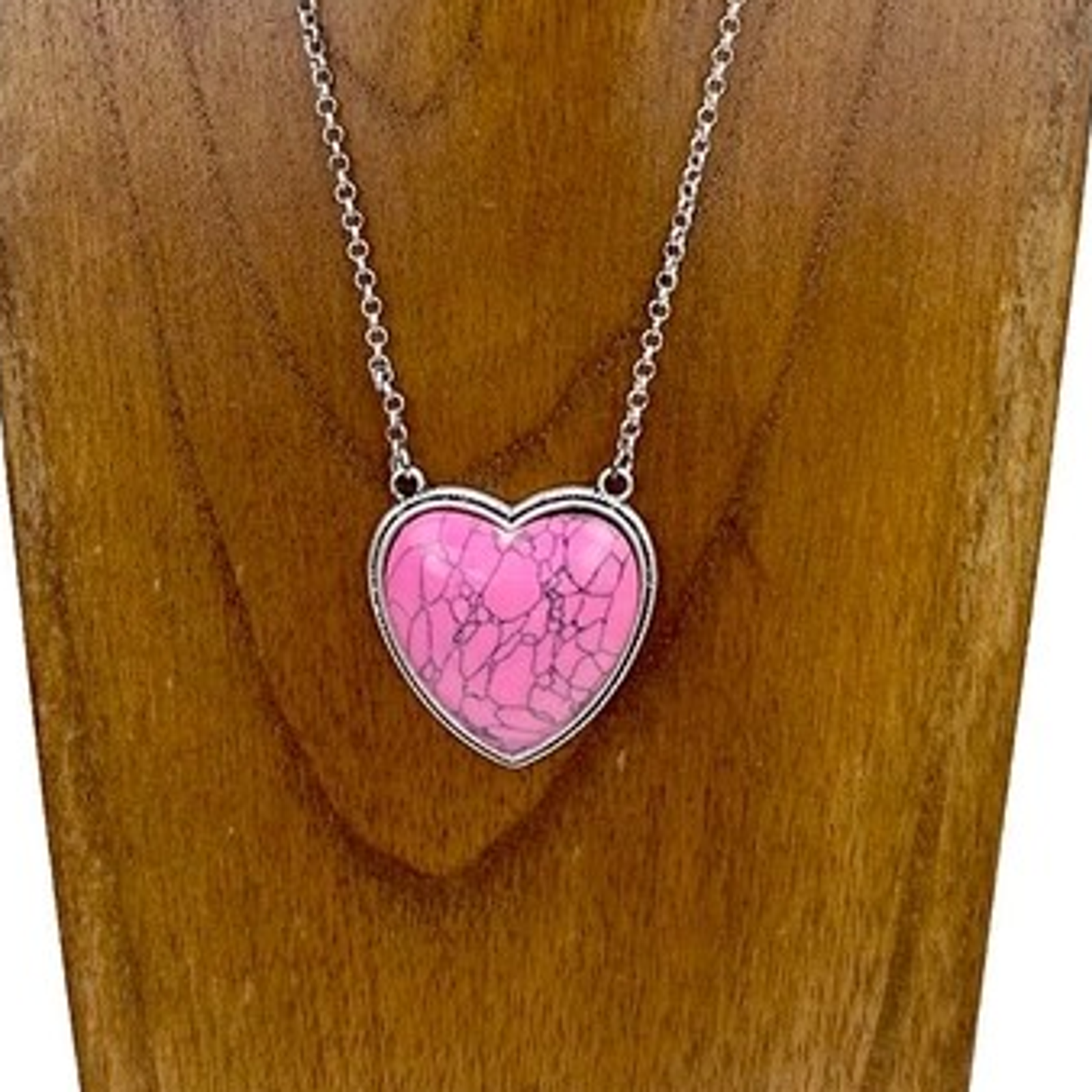 Western Southwestern Pink Stone Heart Necklace